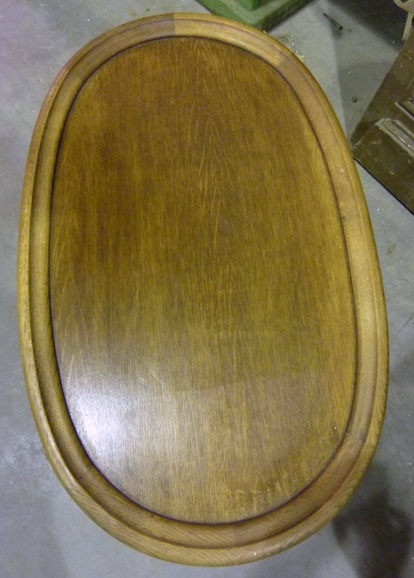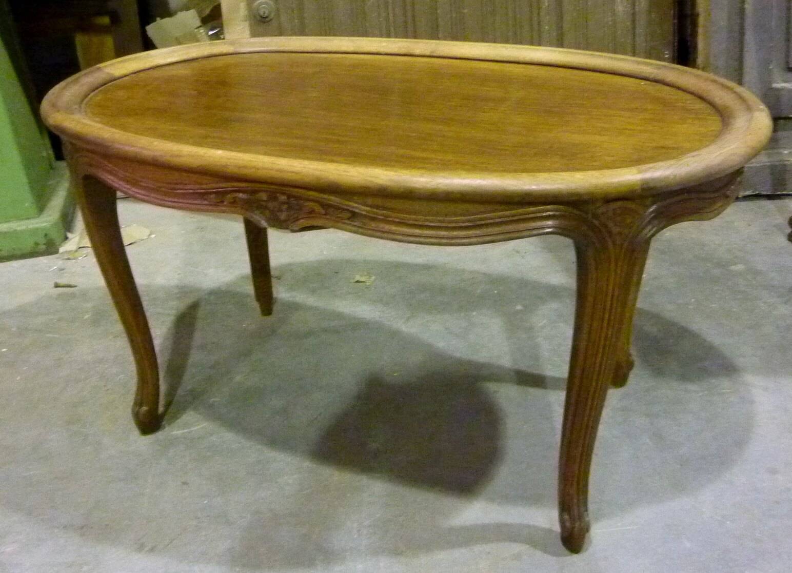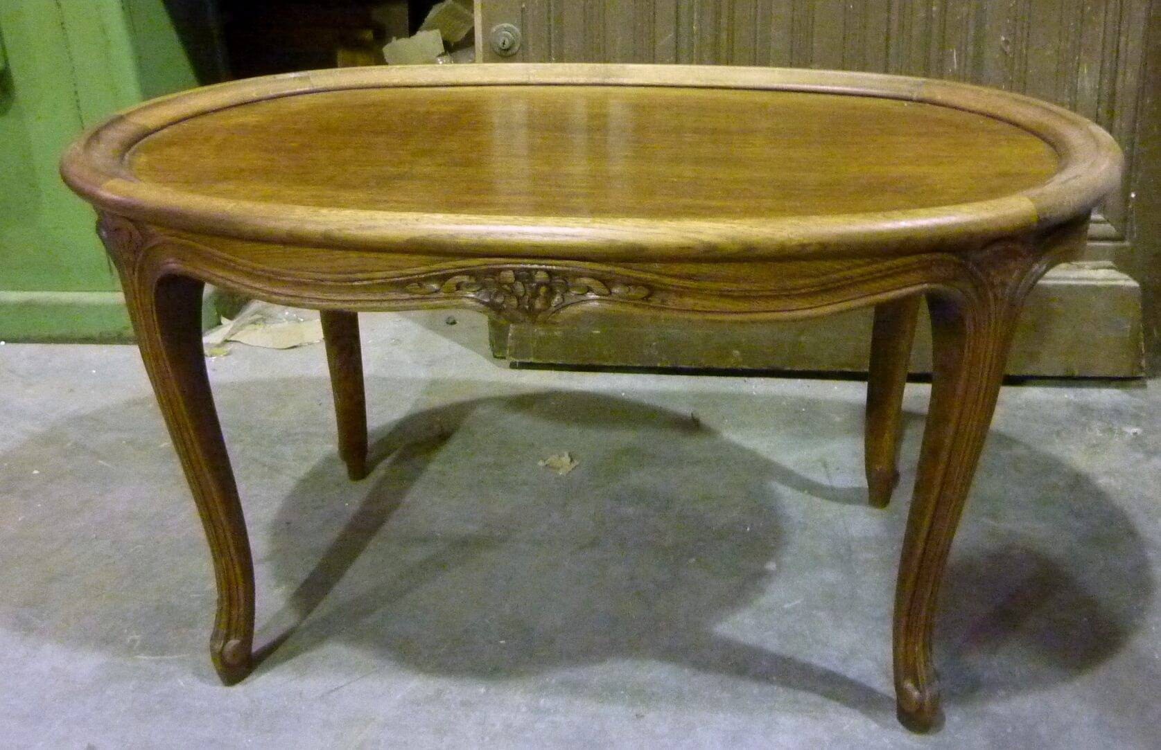 An early 20th century French Louis XVI style solid oak coffee table, the scalloped, oval top above four Cabriole legs carved with foliate and floral motifs.