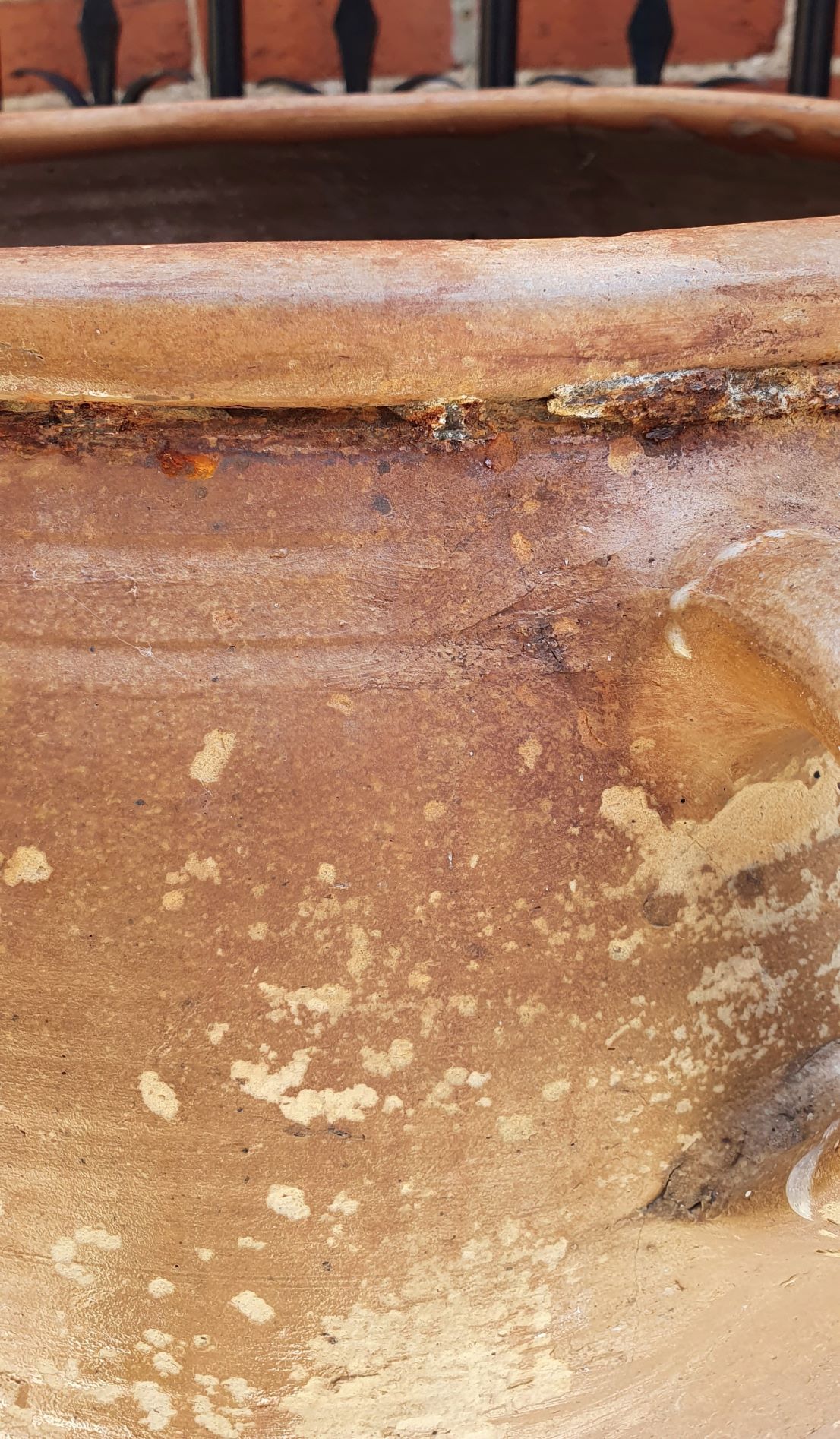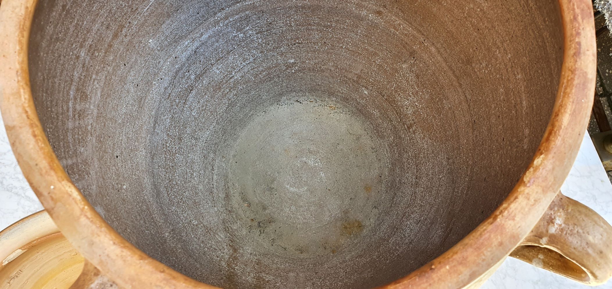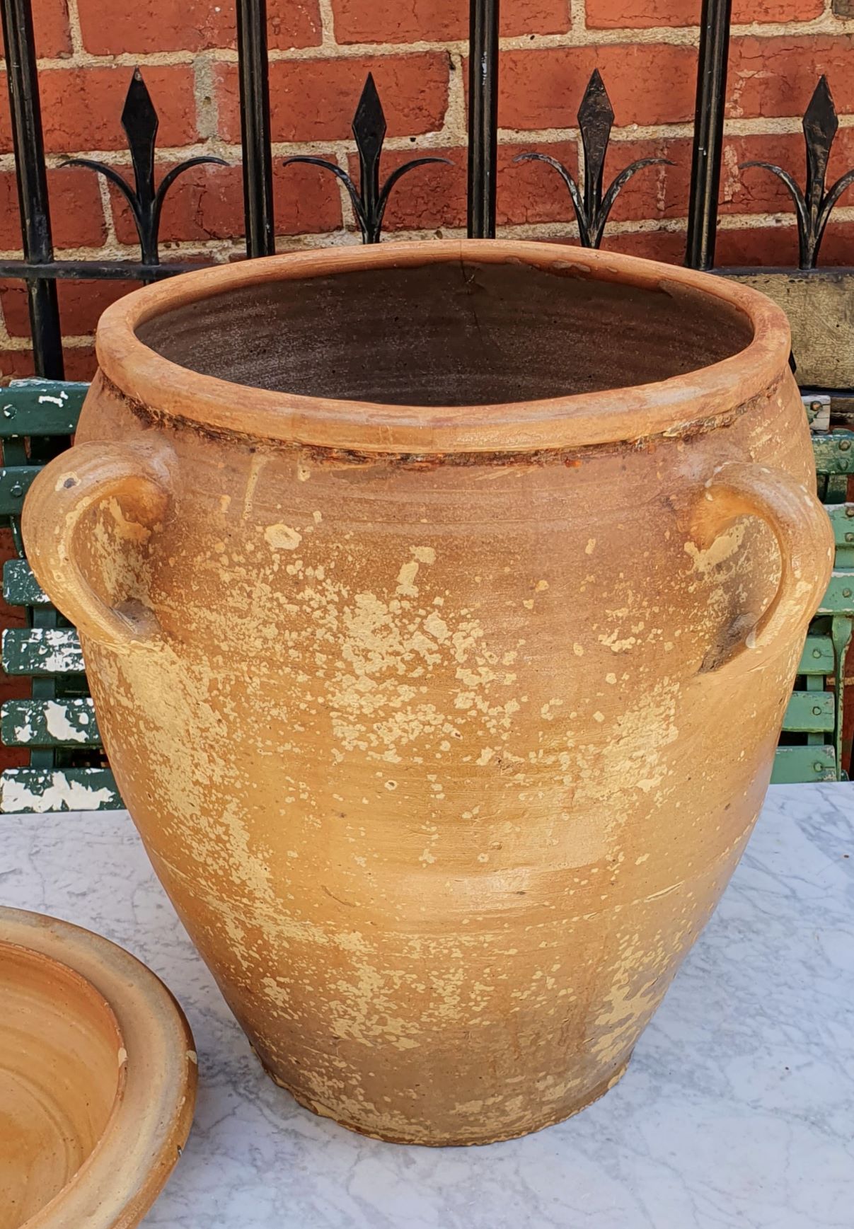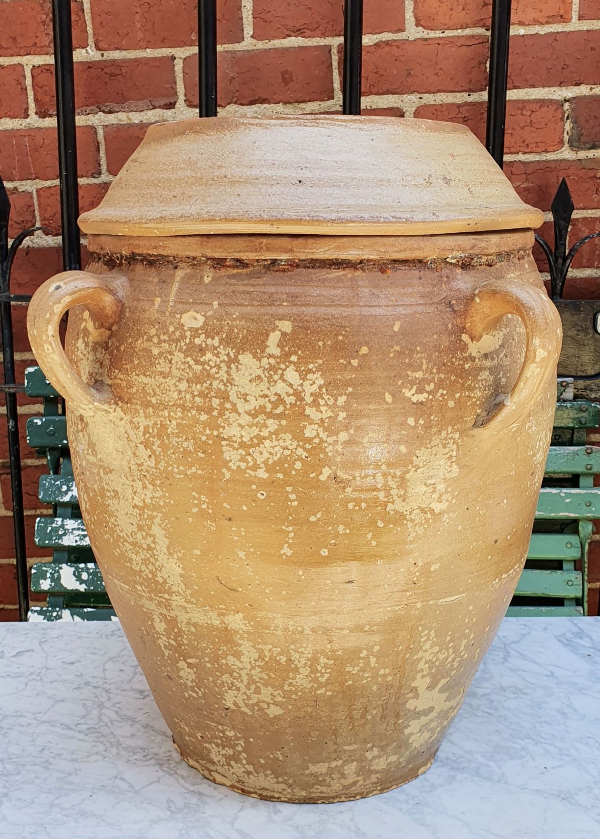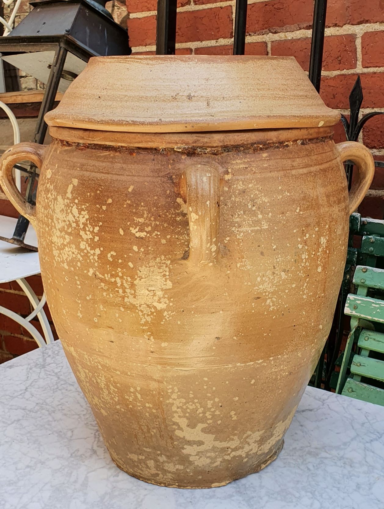A large 19th century French terracotta "Saloir" pot retaining its original lid. A Saloir pot is glazed was traditionally used in provincial France to preserve products, immersed in coarse salt. Area of Southern France, circa 1880.