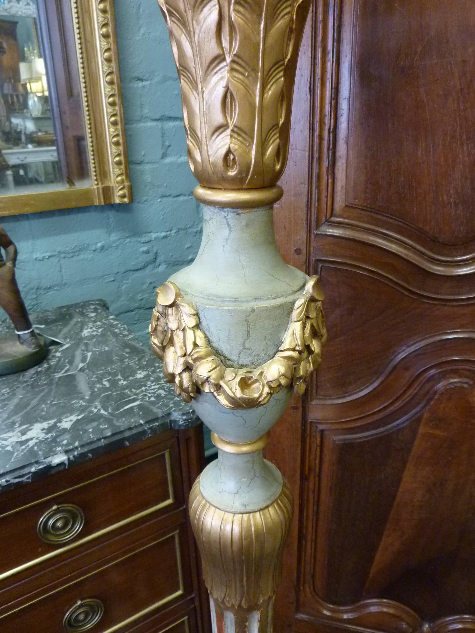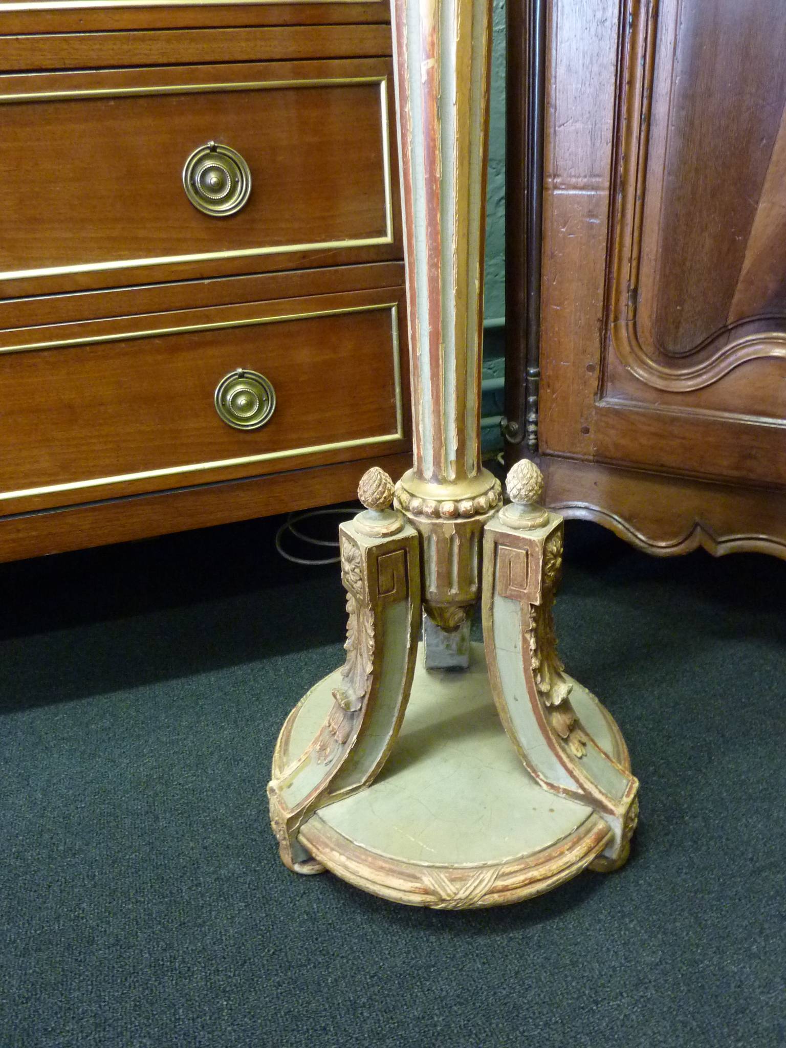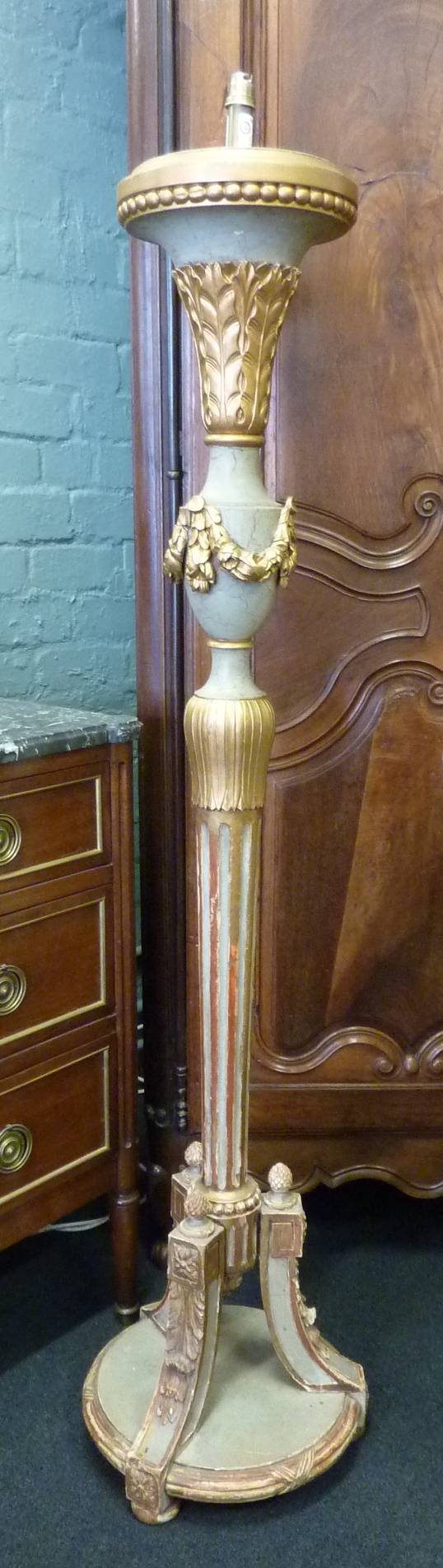 An elegant, late 19th century Parisian Regence style, carved, and painted, and parcel gilt Standard Lamp.