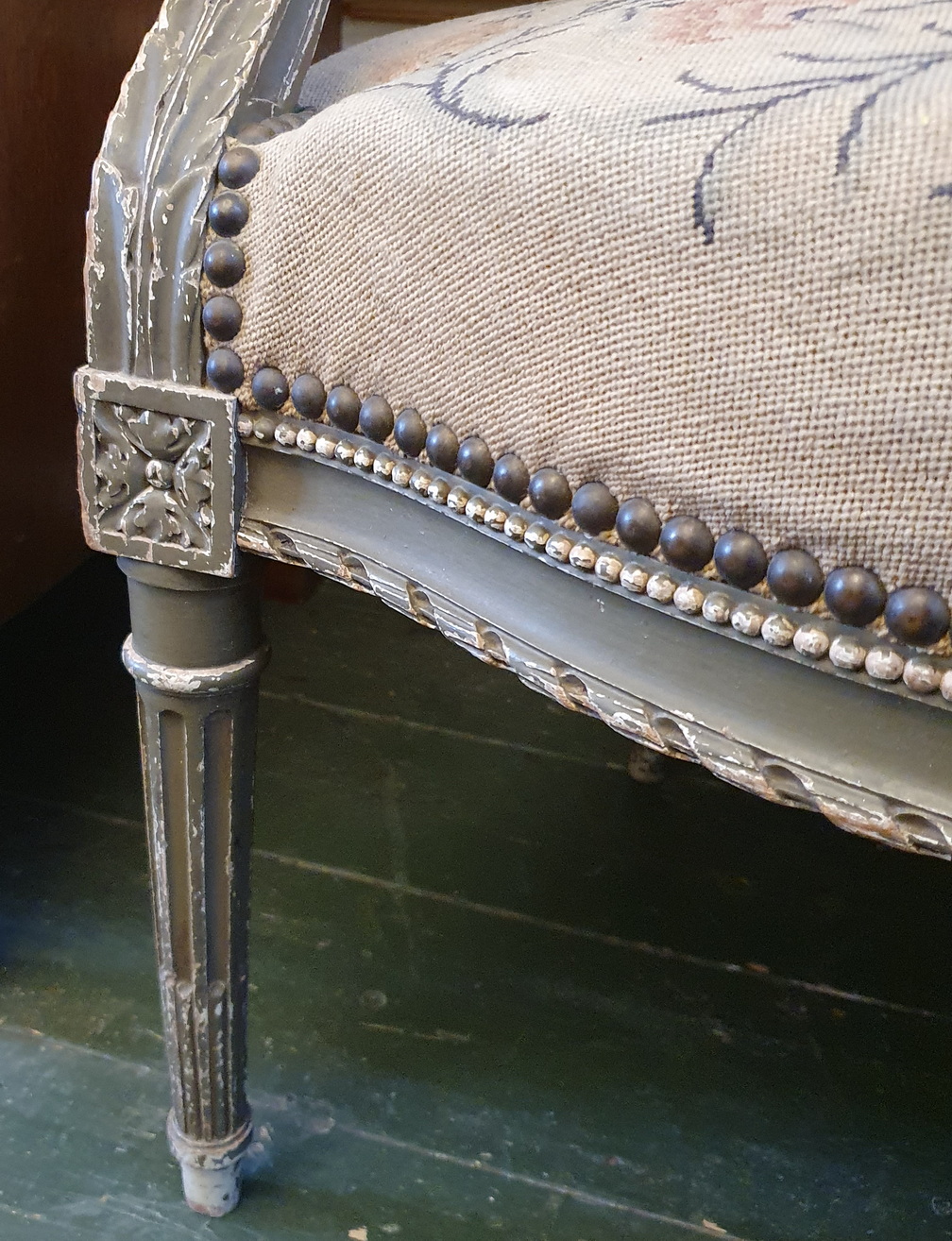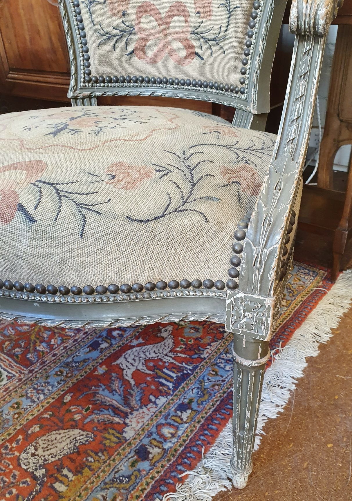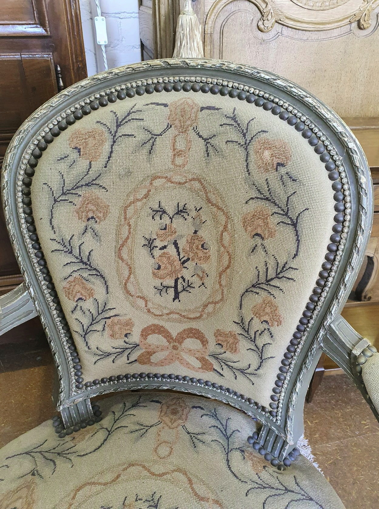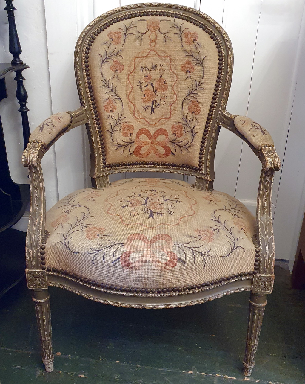 Condition report: In good, as-found and unrestored condition. The tapestries are in good condition and may need steam cleaning. The original finish is slightly worn and may require touch-ups.