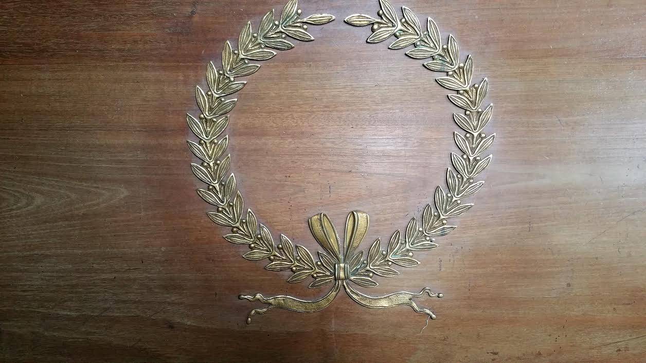 A fine, late 19th century French Napoleonic Empire style, pale mahogany double-bed in the Classic sleigh shape, decorated with gilt bronze mounts in the shape of wreaths, cornucopias, paterae and stylised "palmette" motifs. Area of Paris, circa 1880.