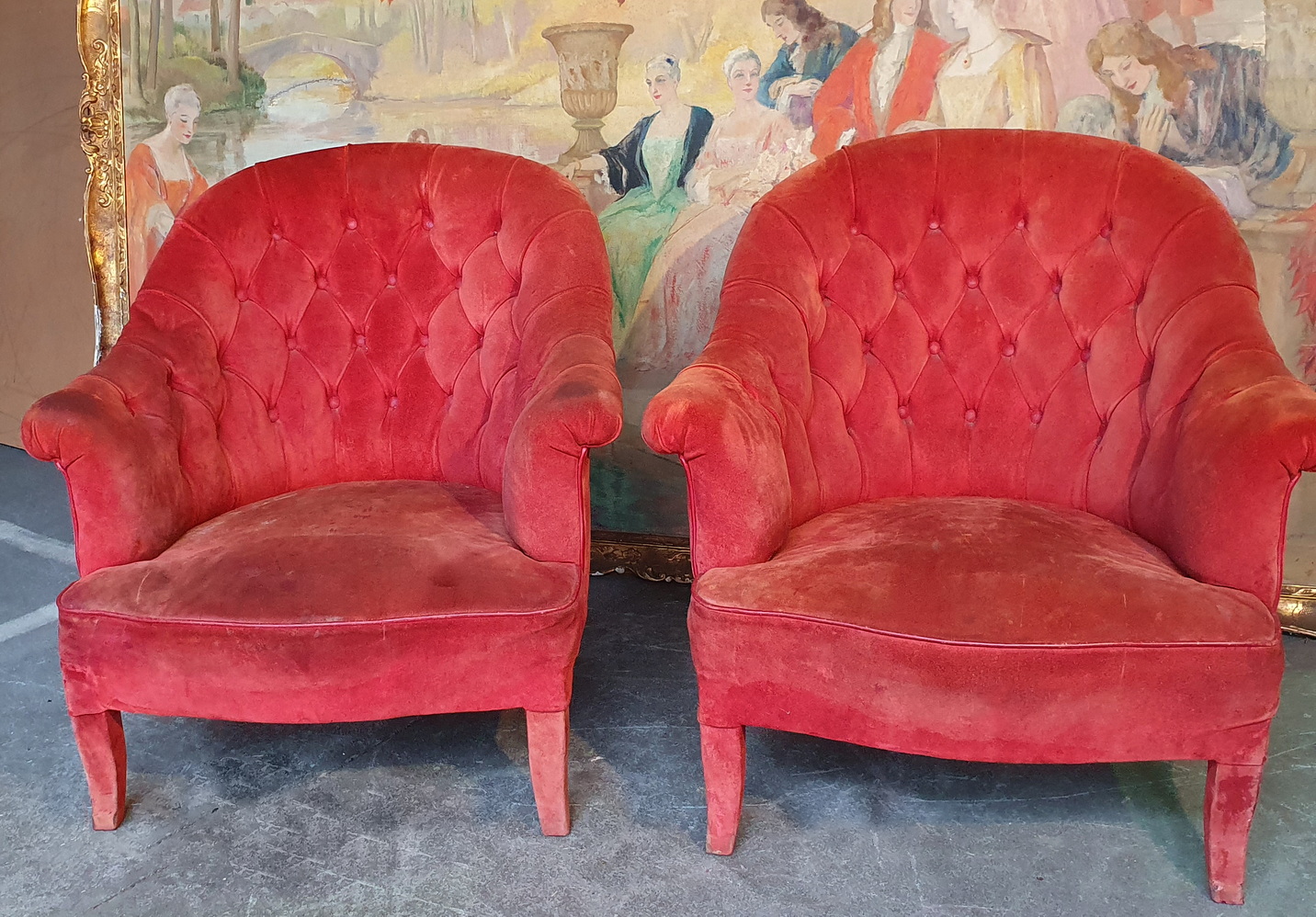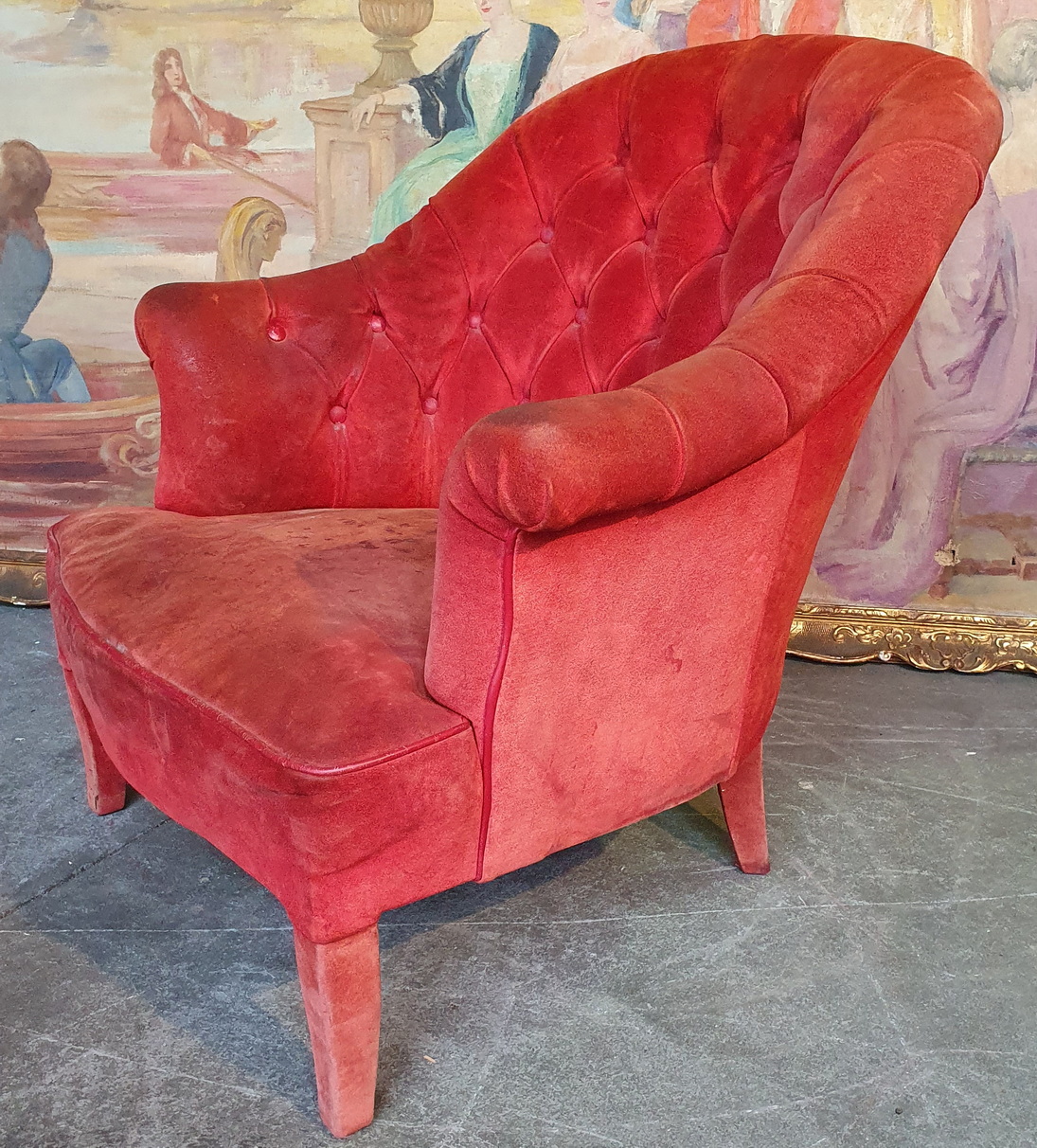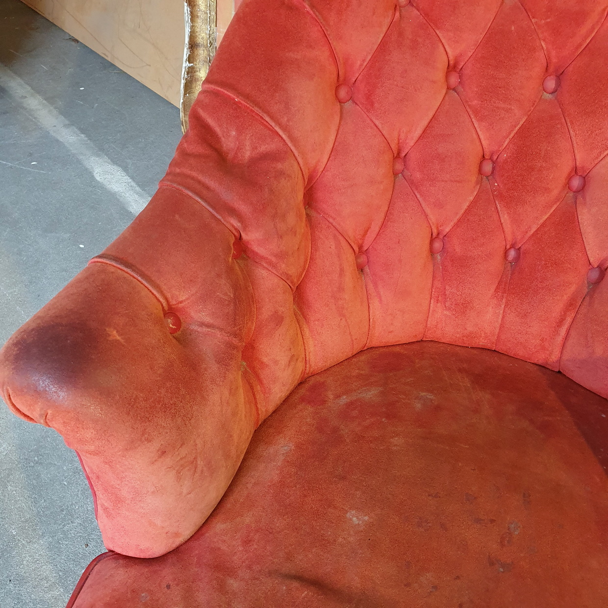 Condition report: Complete and in as-found condition. Requiring reupholstery.
