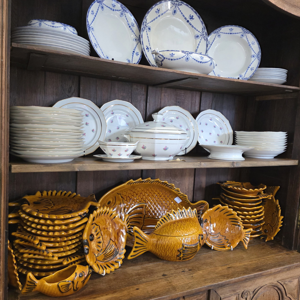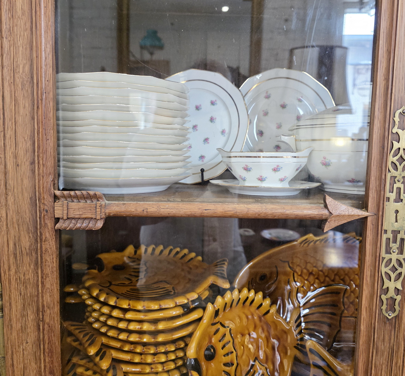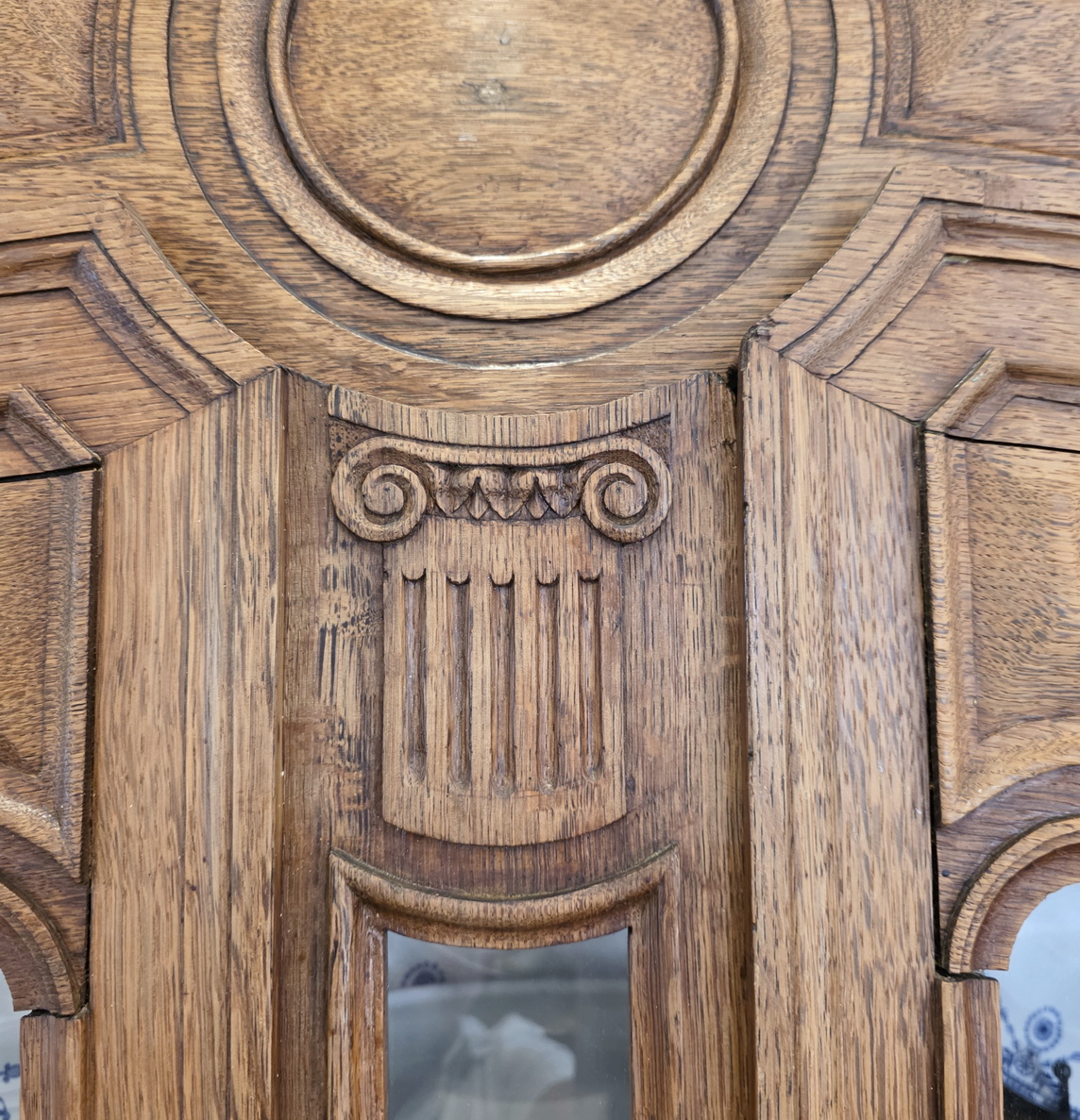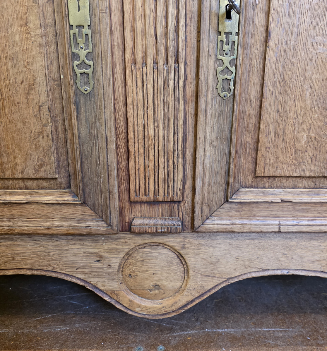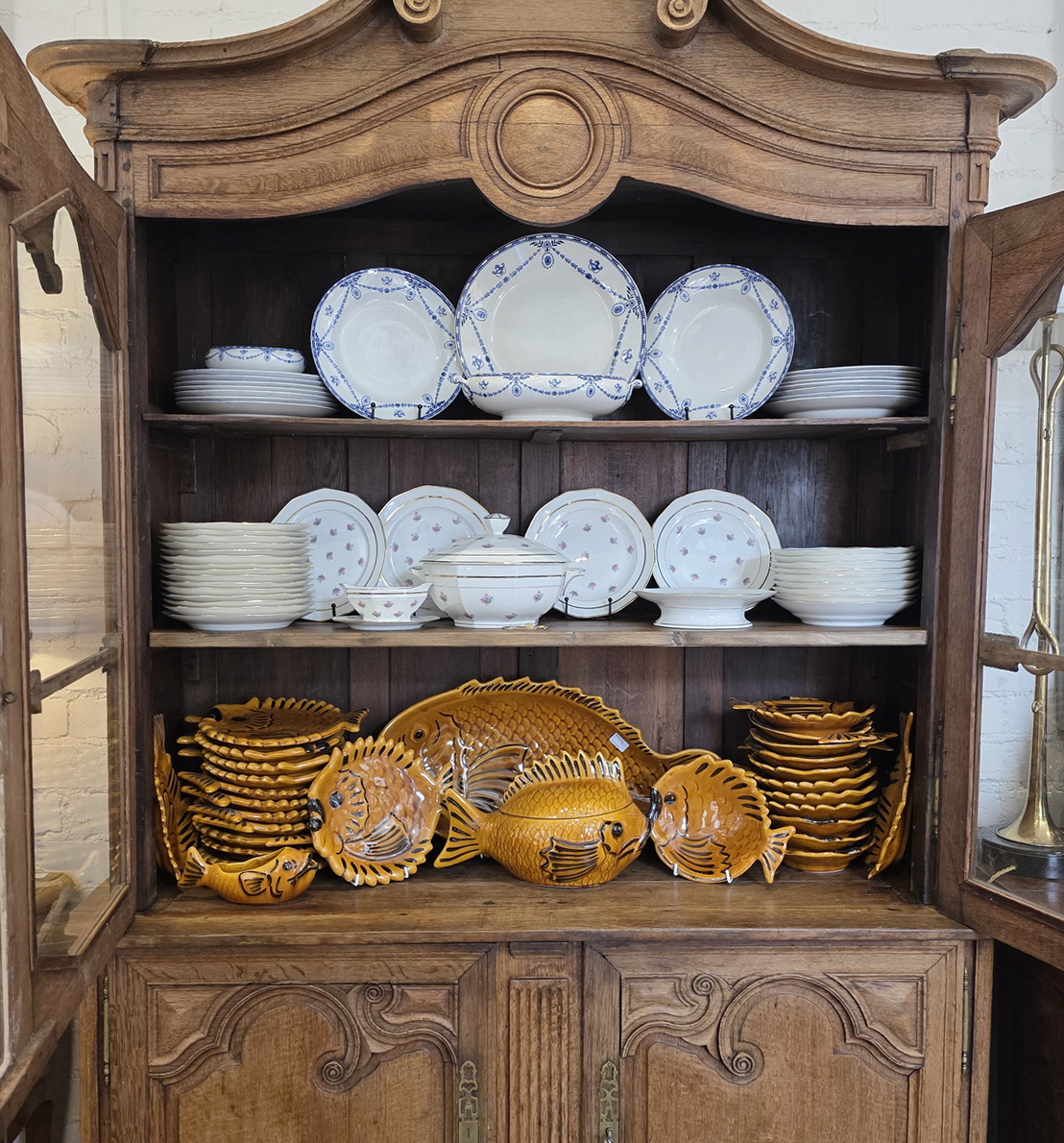 A 19th century French Napoleon III period, Louis XV style, solid oak 'Buffet Vitré', a glazed bookcase-buffet, originally used in a home for food storage and as a display piece for fine China and glassware. The oak timbers are nicely-burnished and retain their original luminous patina. Internally fitted with the original shelving. Please note the elegant and large 'Chapeau de Gendarme' pediment, and the façade, which is decorated with carved arrows, and with typical 'Cauchois' haut relief scrollwork and circular mouldings. This piece, born as a buffet, would make an excellent bookcase. Area of Pays de Caux (Upper Normandy), circa 1860.