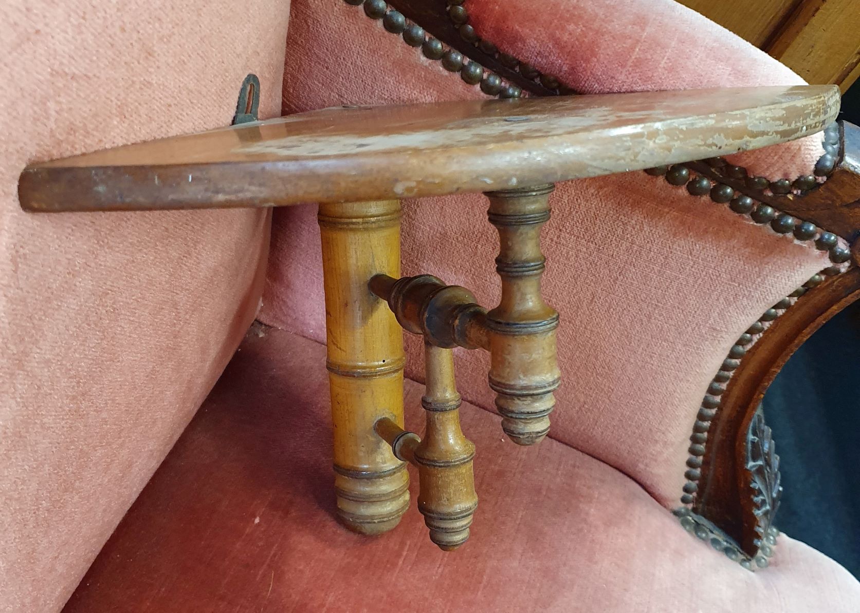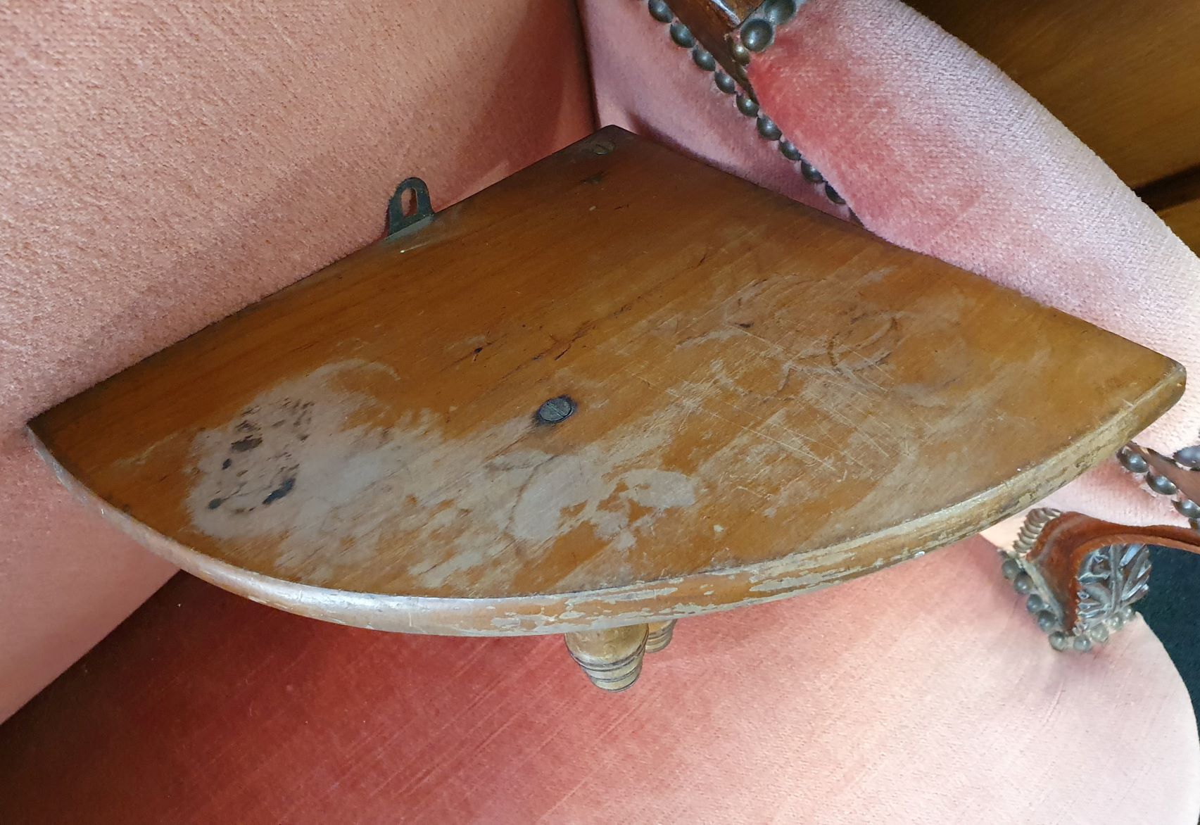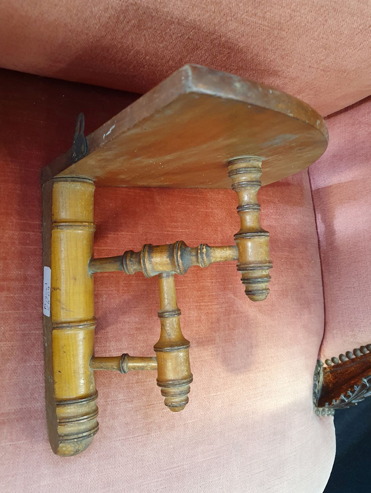 A 19th century French turned beechwood quarter-round corner hanging-shelf, the turned elements decorated with shapes of cut bamboo branches. Area of Paris, circa 1870.