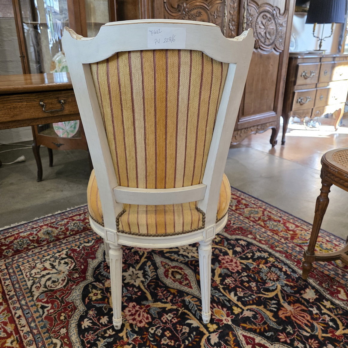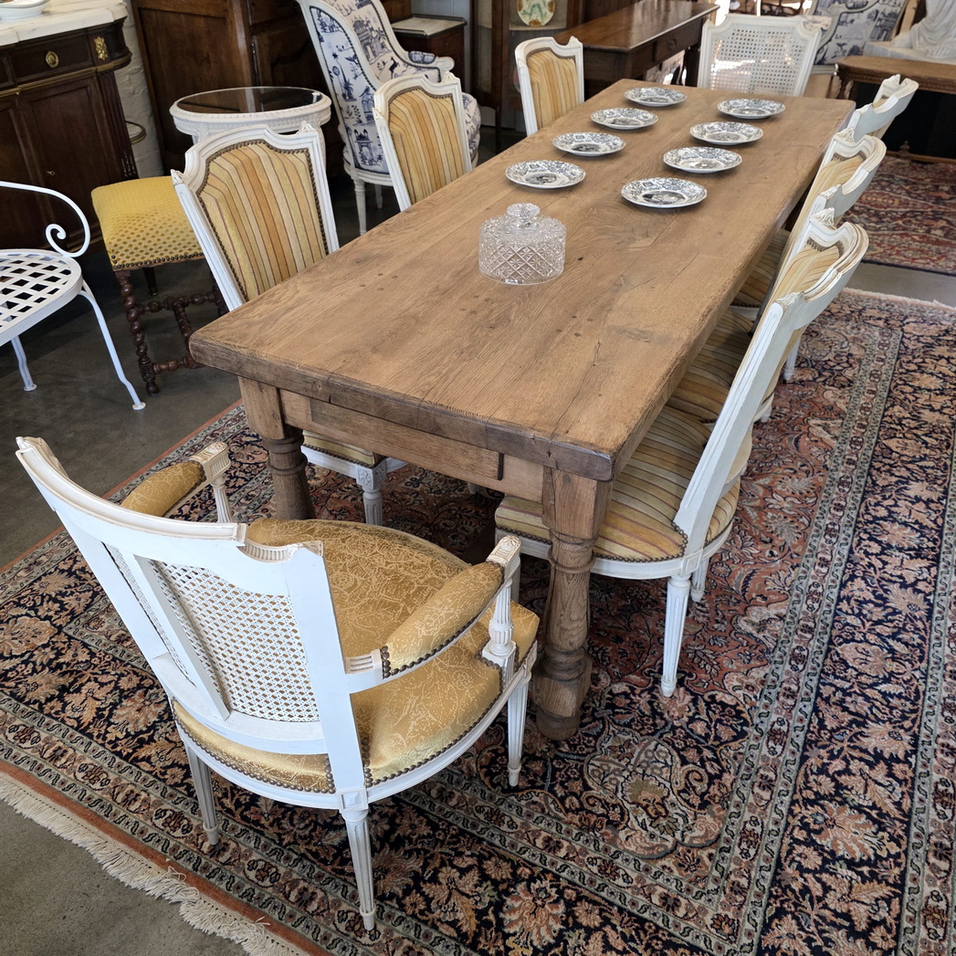 This pair of armchairs can be made into a set of 8 dining chairs by adding the set of very similar chairs, stock 16361.