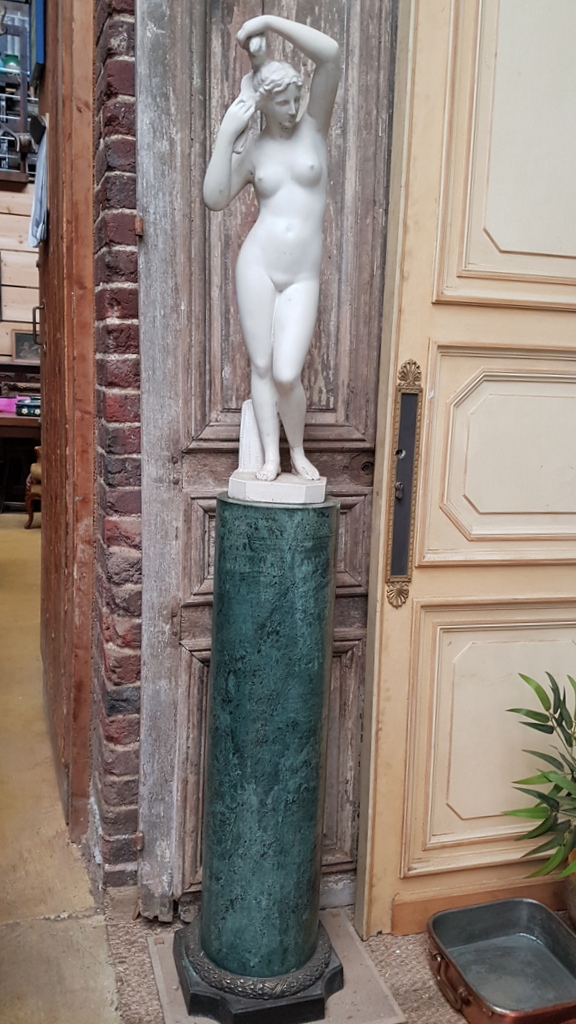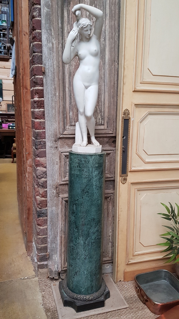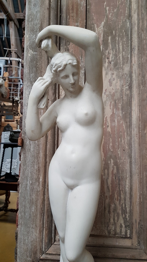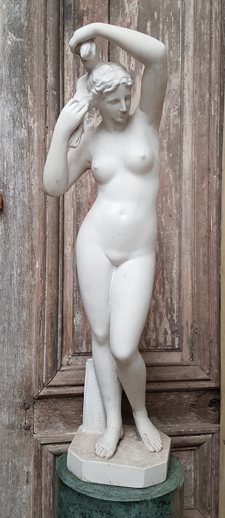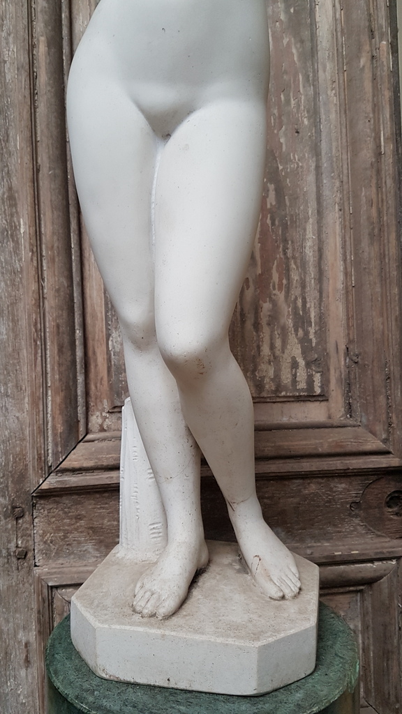 An early 20th century French white marble Classical statue of Venus Aphrodite, the Greek goddess of love, beauty, pleasure, and procreation. Area of Paris, circa 1900.