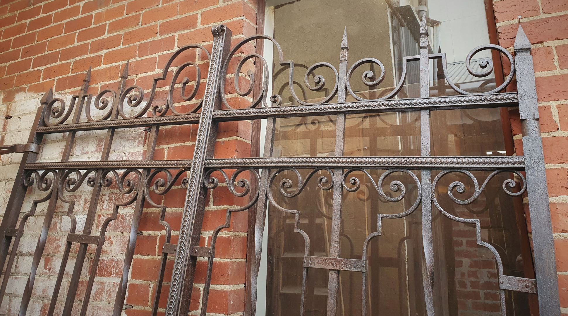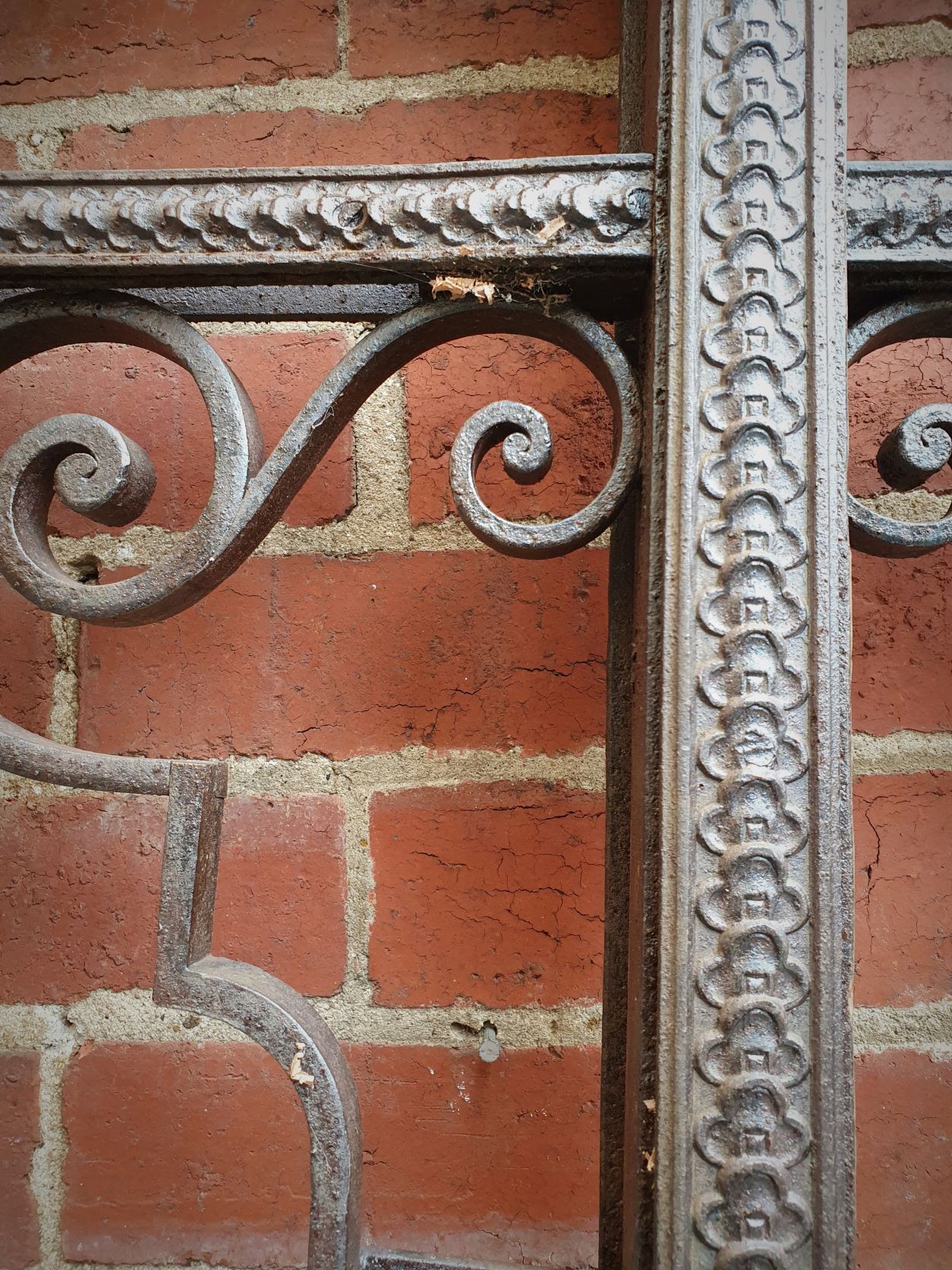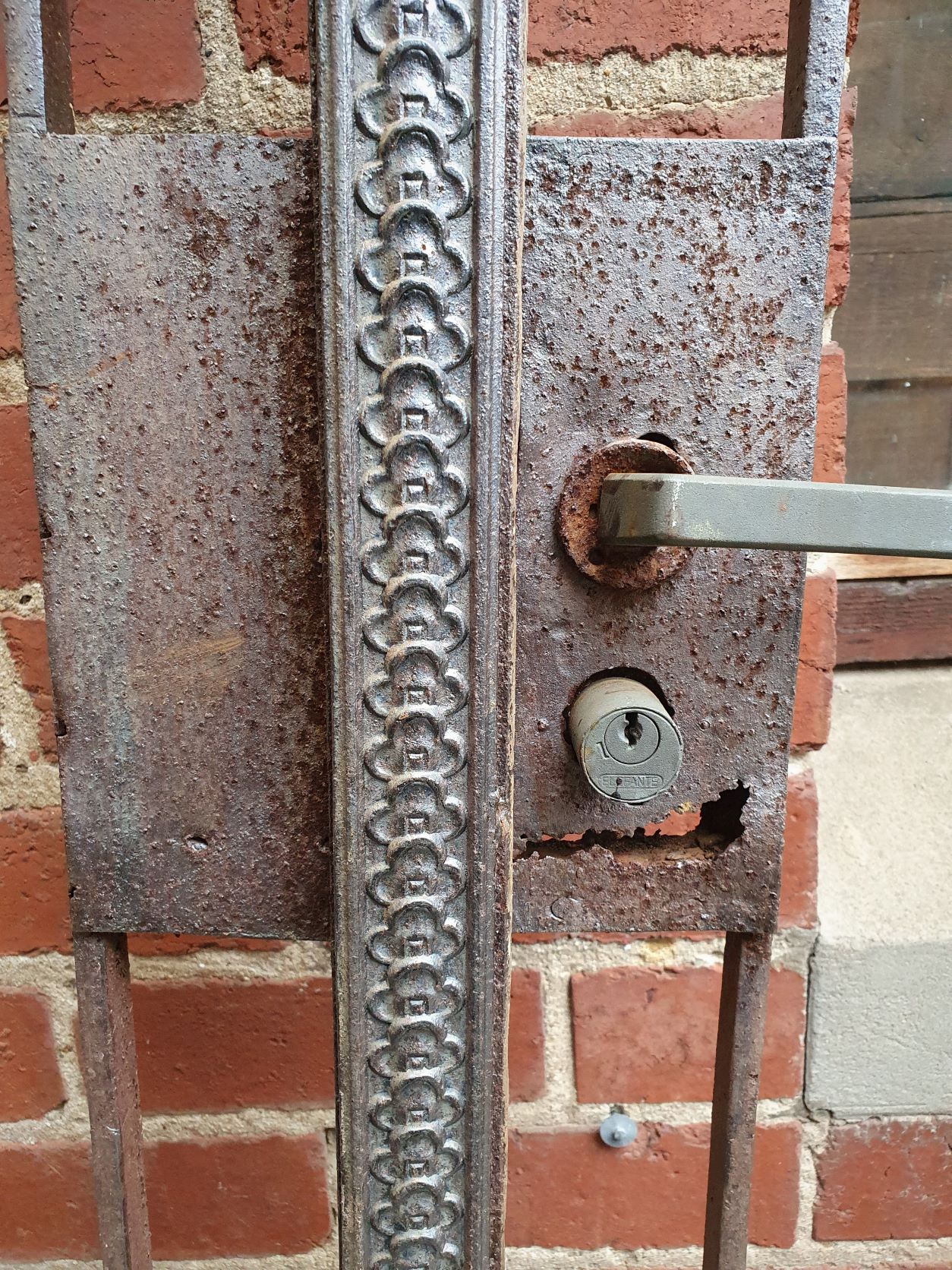 Condition report: In good and original condition, showing wear in keeping with its age. Repairs required to hinges and to areas corroded by weather, particularly the lower panels.