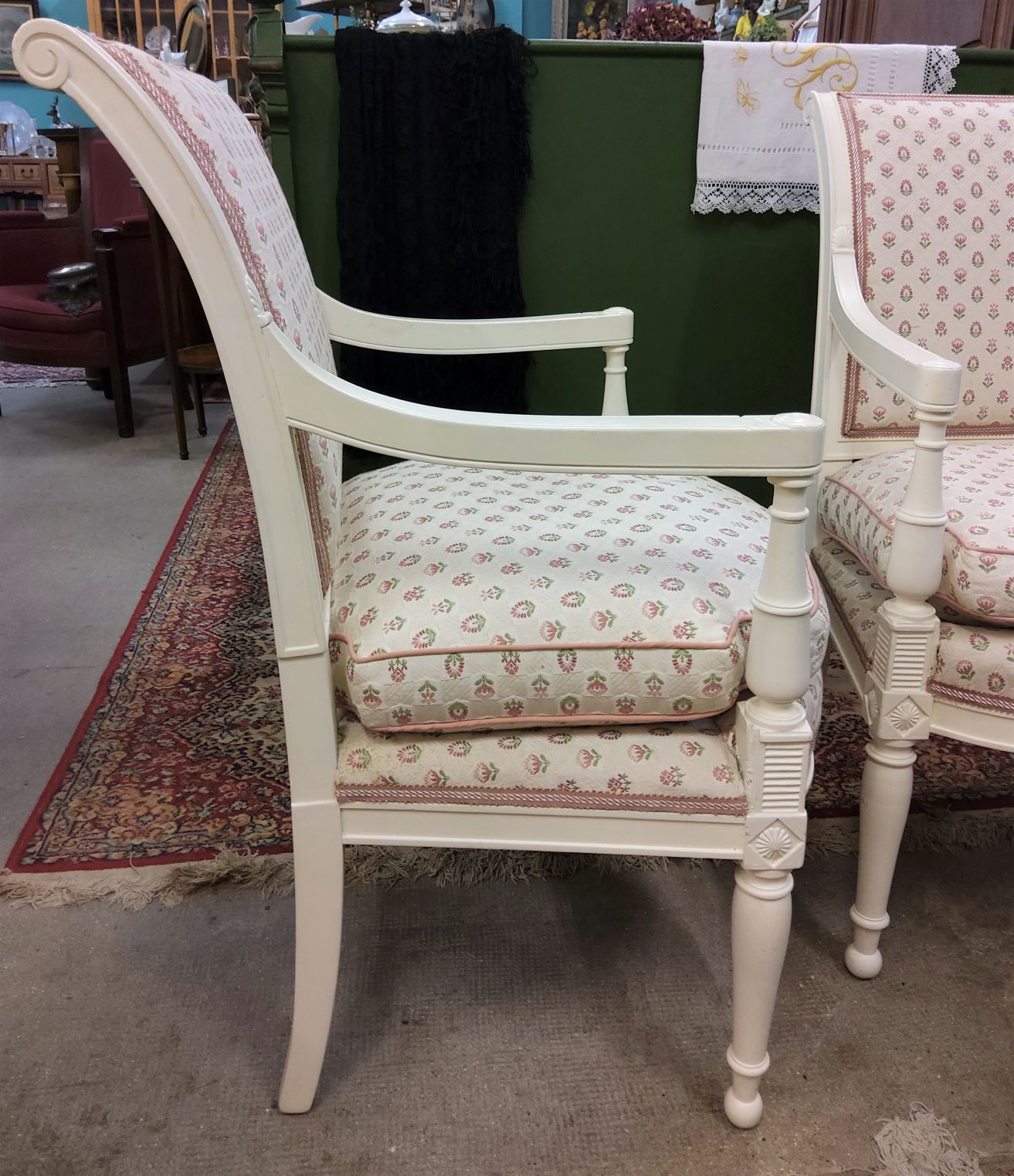 A pair of 19th century French Napoleon III period, Directoire style, carved, turned and painted Fauteuil armchairs of understated and Classical proportions. Note the wonderful luminosity of the painted finish. Upholstered with separate seat cushions, for added comfort. Area of Paris, circa 1880.