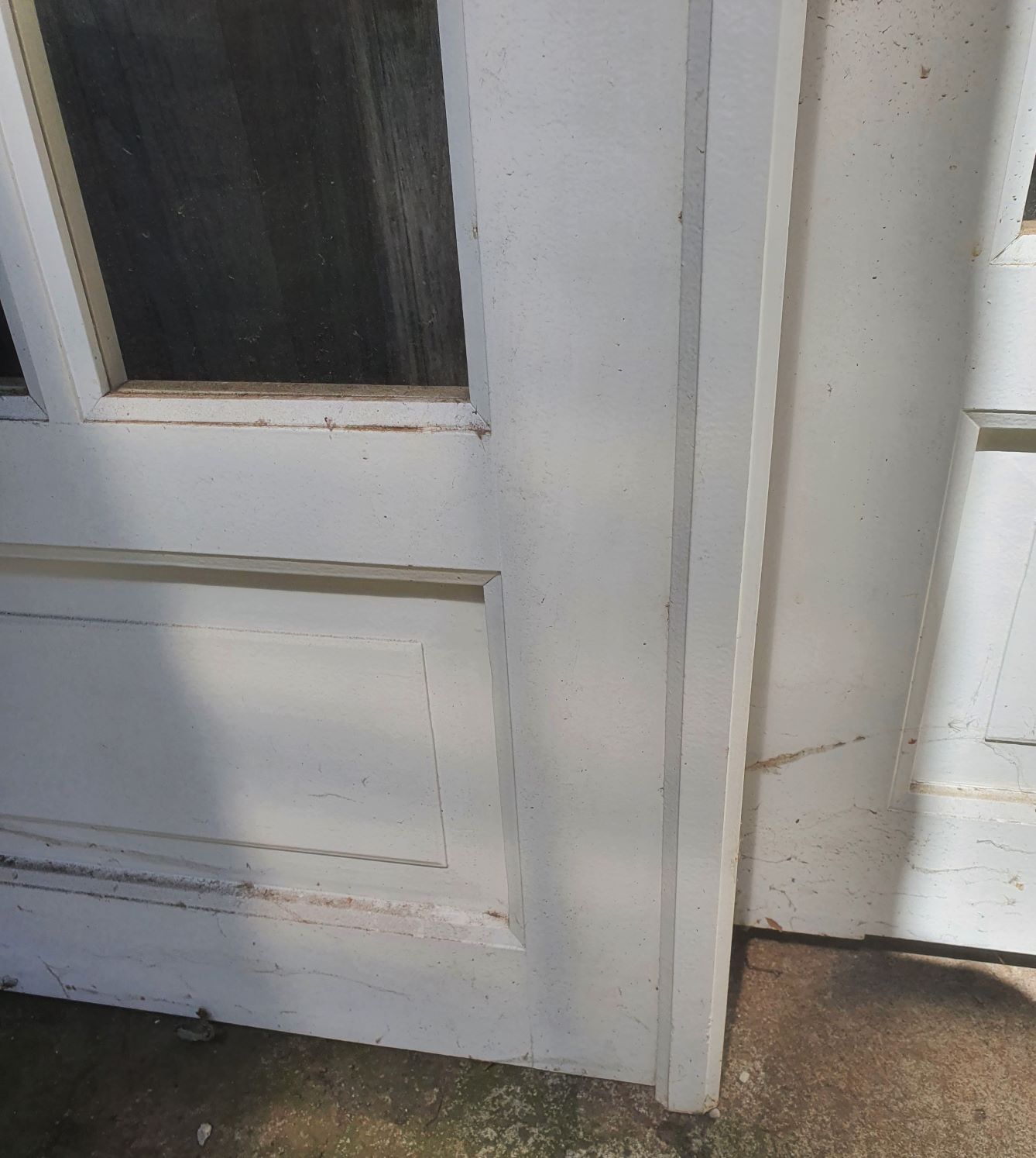 A pair of early 20th century French astragaled external/ internal doors, each door fitted with 18 glass panels above a small solid panel. Area of Isle de France (Greater Paris), circa 1930.