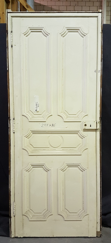 A 19th century Napoleon III period internal door, traditionally jointed and panelled, painted and with several coats of old paint. Provenance, a Haussmann period apartment in Paris, circa 1860. If required, our workshop can adjust, to some extent, the width and height of these doors.