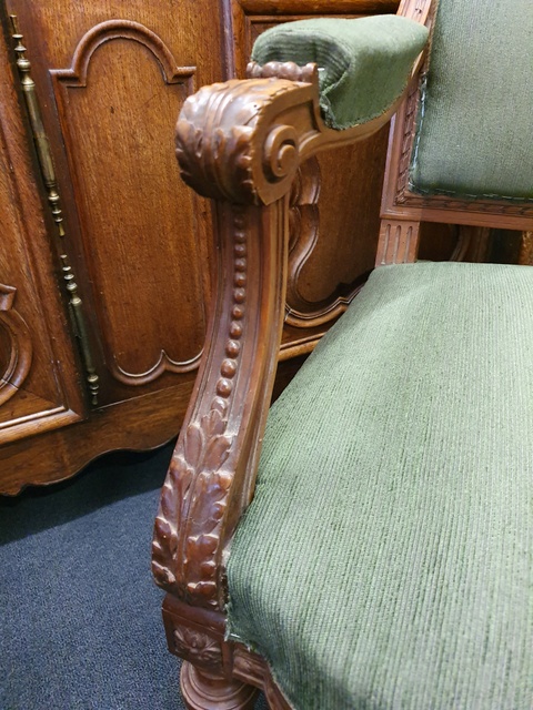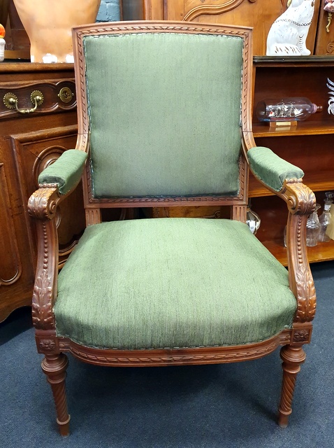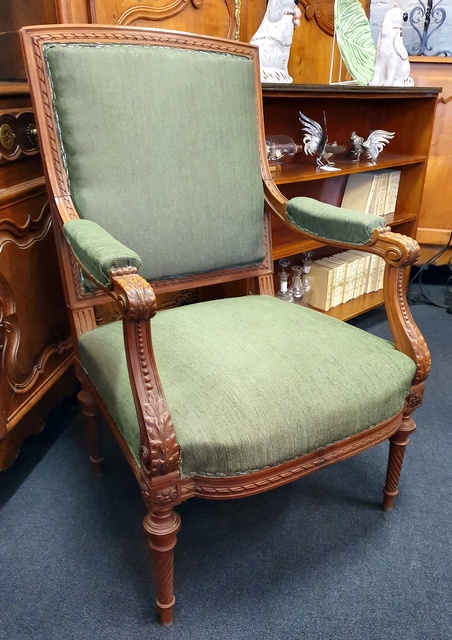 A fine pair of 19th century French Napoleon III period, Louis XVI style carved walnut Fauteuil armchairs of understated elegance. Note the perfect classical proportions and the masculine character of these armchairs. Paris, circa 1880.