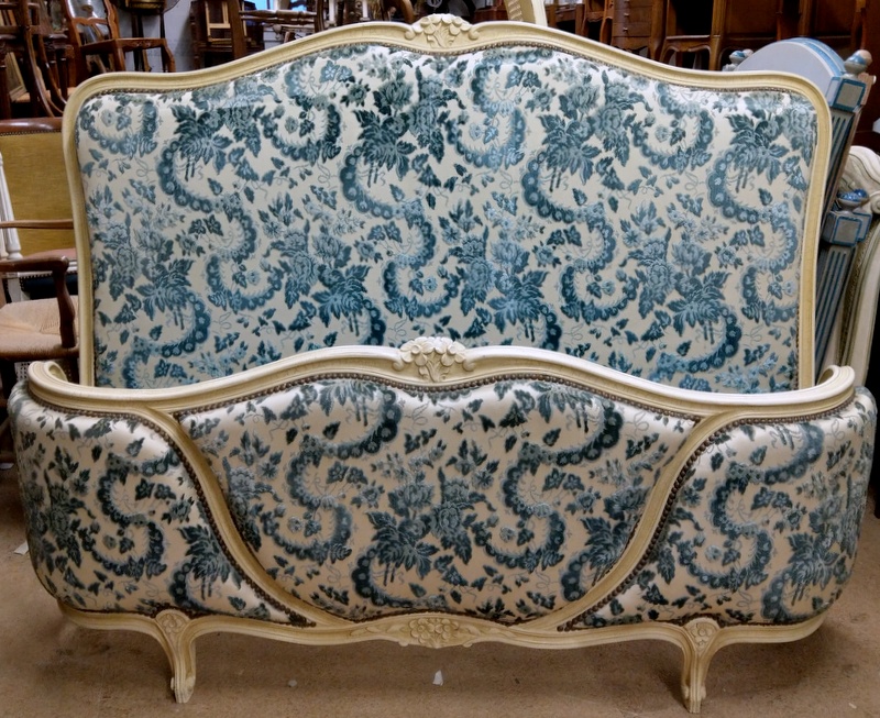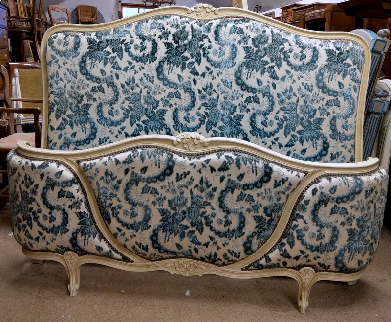 A fine, early 20th century French Louis XV style carved and painted beechwood double size bed, comprising a bed head, a ‘Corbeille’ footer and the original, carved side rails. The width allows for a double-bed size mattress, but the side rails may need to be sympathetically lengthened to accommodate a standard Australian double-bed mattress length. There is a way to possibly accommodate a Queen size mattress on this bed. Please ask Miguel for details on this. Area of Paris, circa 1930.