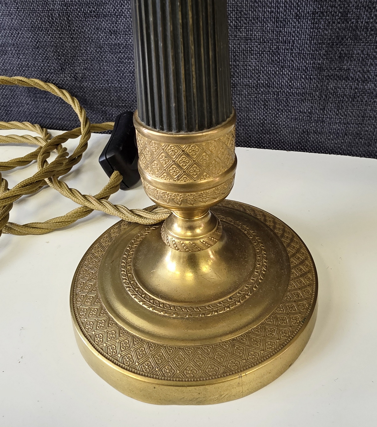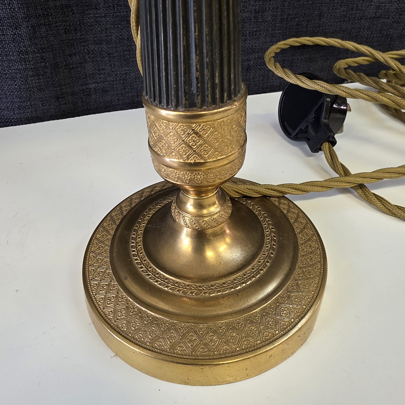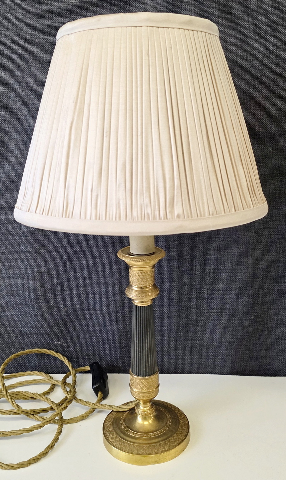 Condition report: In good and un-restored condition. Fully rewired to Australian safety standards using gold silk electrical cords, with cord-switches.