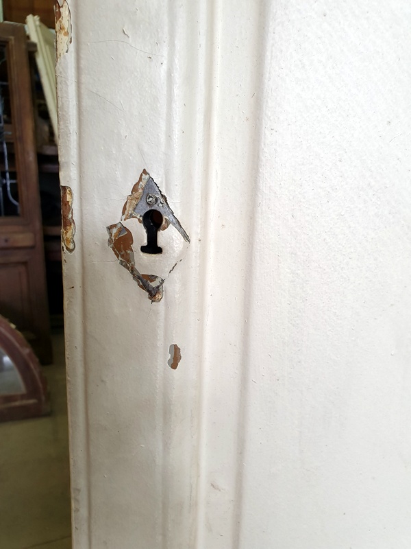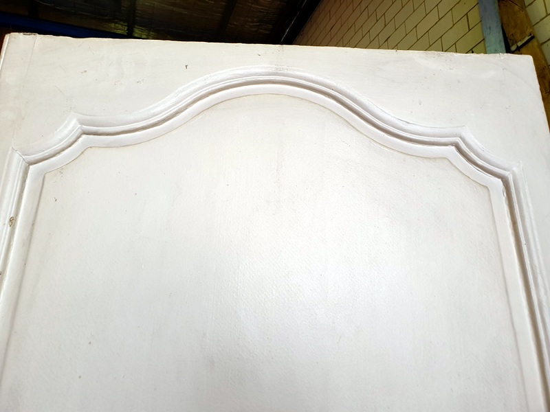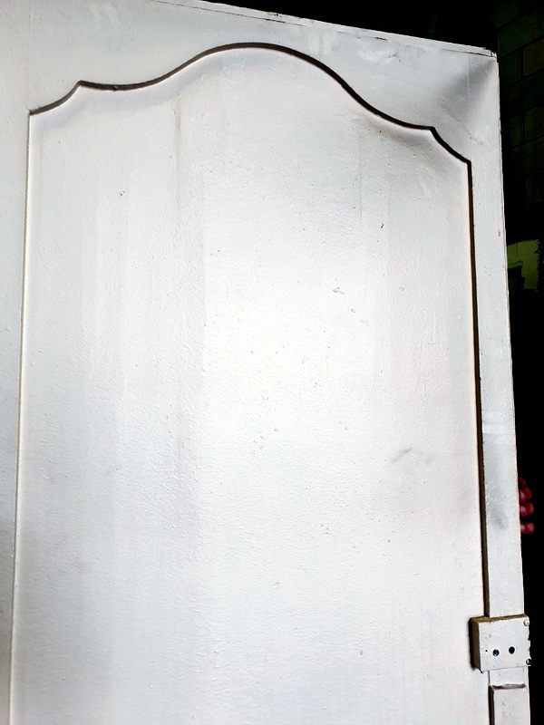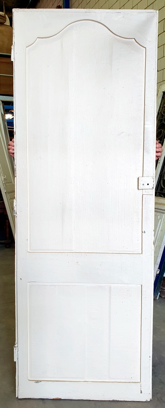 A single 19th century French internal door, traditionally jointed and hand-planed, the top panel with an elegant stepped arch. White-painted, and with several coats of old paint. Area of Isle de France, Greater Paris, circa 1880.