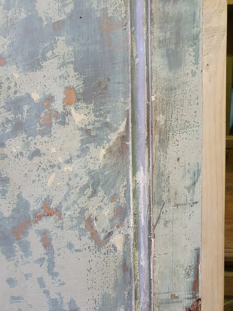 A 19th century French internal door, traditionally jointed and with a hand-planed surface covered with several coats of old paint. Area of Normandy, circa 1850. Please note that our workshop is able to, on request, to reduce or increase the heights and widths of doors.