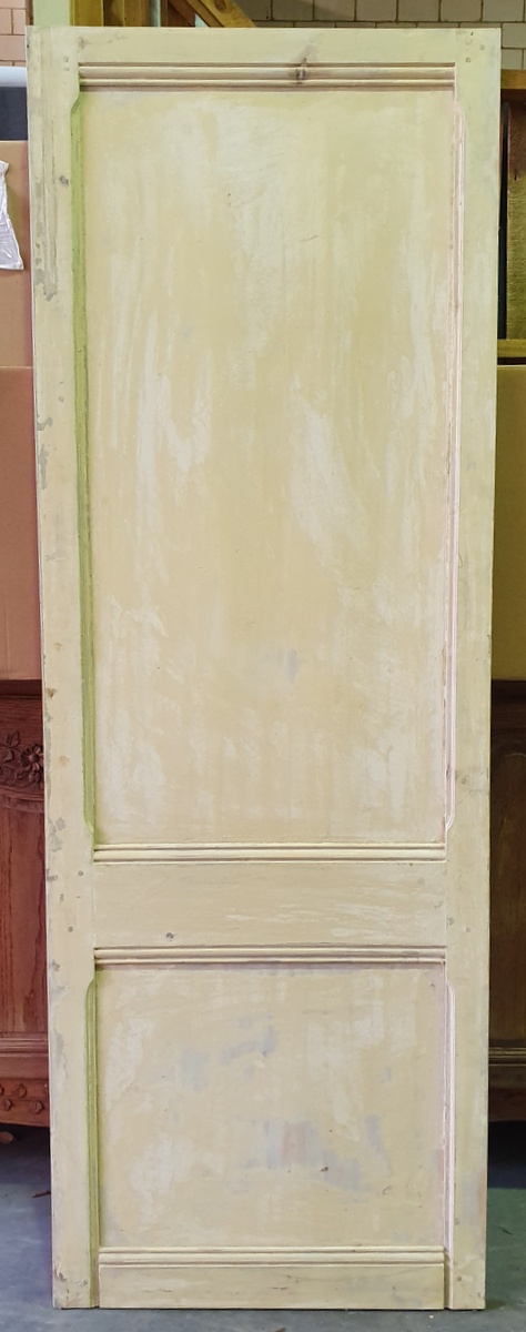 A single 19th century French internal door, traditionally jointed and hand-planed, with several coats of old paint. Area of Normandy, circa 1850. Please note that our workshop is able to reduce or increase, within limits, the heights and widths of doors.