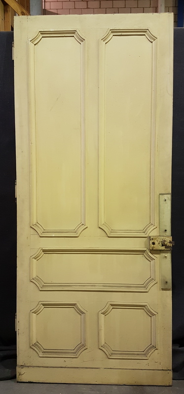 A 19th century Napoleon III period internal door, traditionally jointed and panelled, painted and with several coats of old paint. Provenance, a Haussmann period apartment in Paris, circa 1860. If required, our workshop can adjust, to some extent, the width and height of these doors.