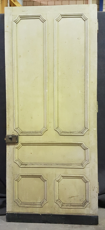 A 19th century Napoleon III period internal door, traditionally jointed and panelled, painted and with several coats of old paint. Provenance, a Haussmann period apartment in Paris, circa 1860. If required, our workshop can adjust, to some extent, the width and height of these doors.