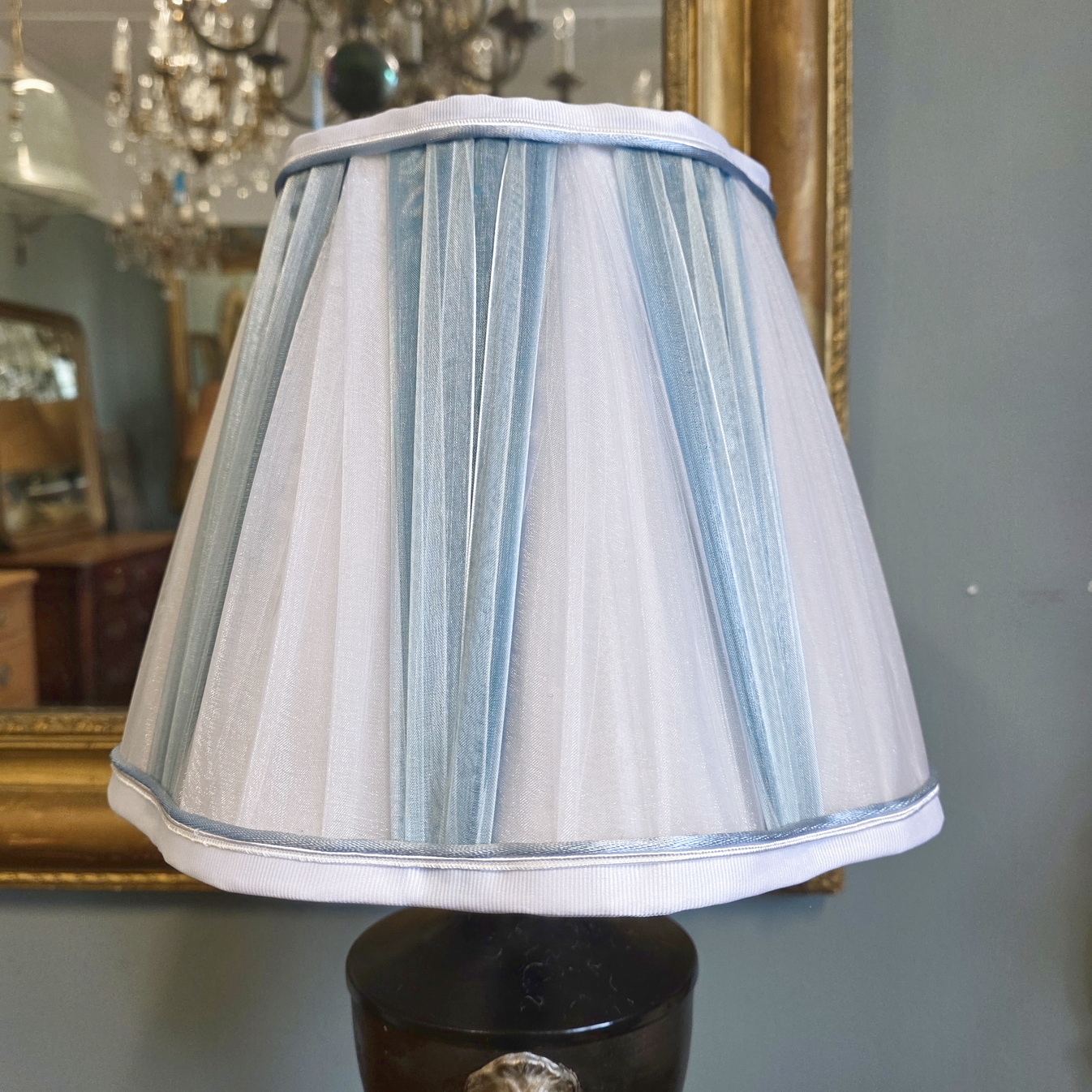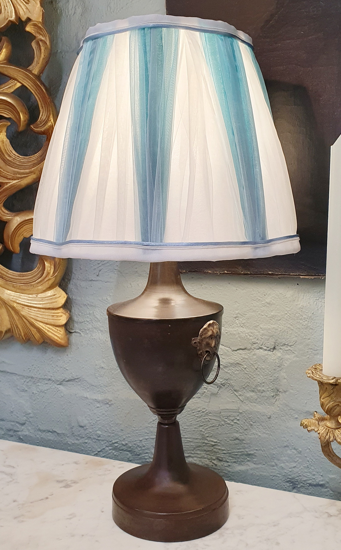Please note: these lamps are shown here fitted with Coco Chanel style lampshades, bespoke-made by our workshop. These shades are included in the price.