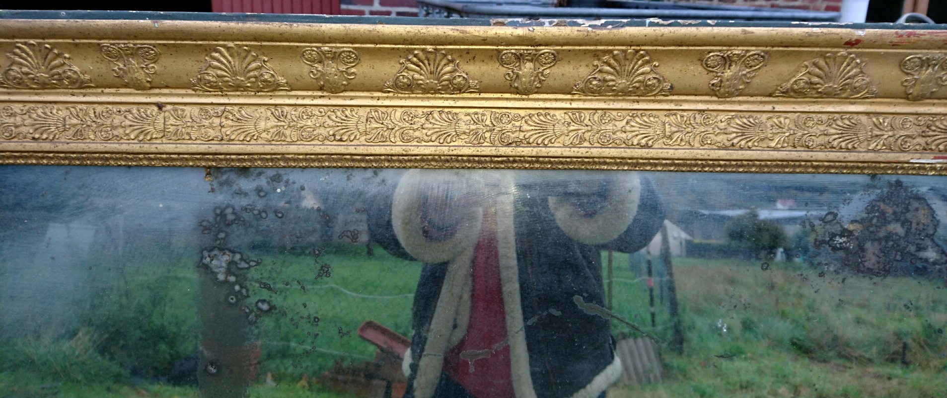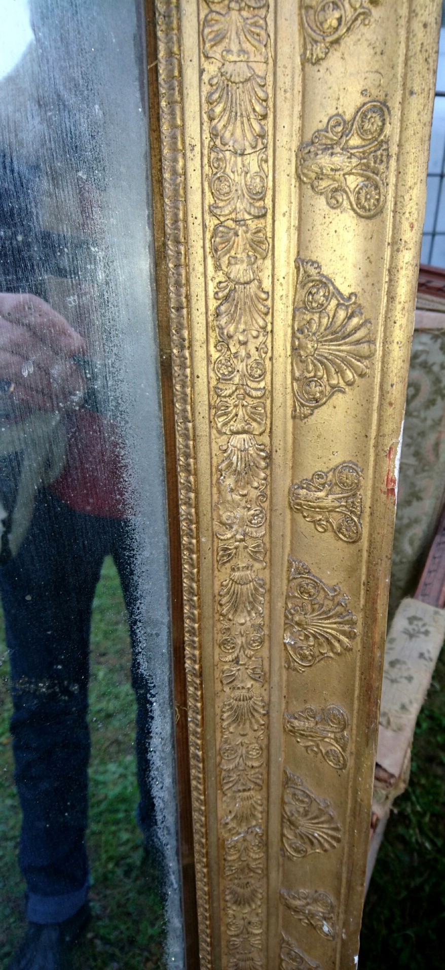 A fine, French Charles X period gilt mantle mirror, the frame decorated with gilt pastille-work 'Palmette' motifs fitted with the original mirror plate. This elegant mirror can be hung vertically or horizontally, and is of simple and understated Neoclassical design. Paris, circa 1820.
