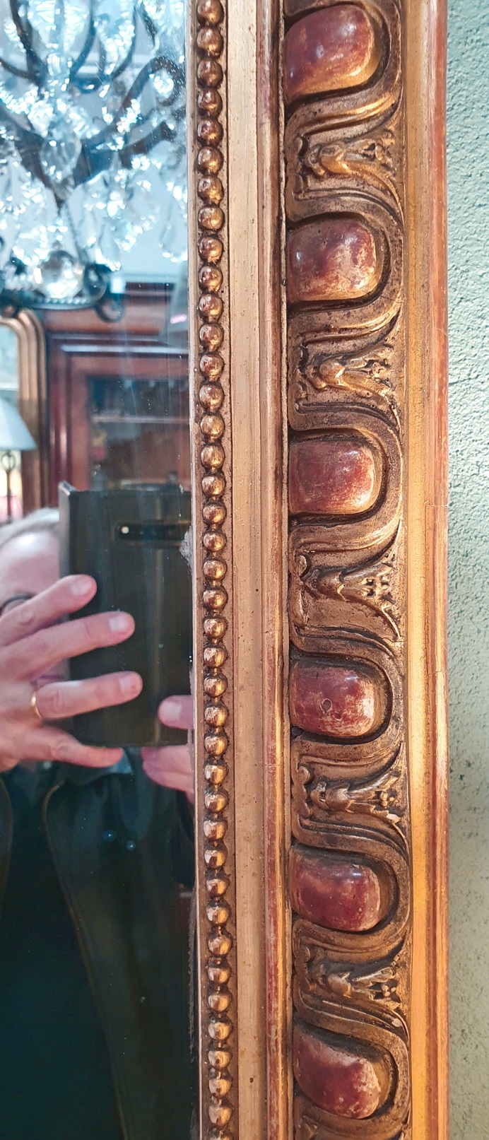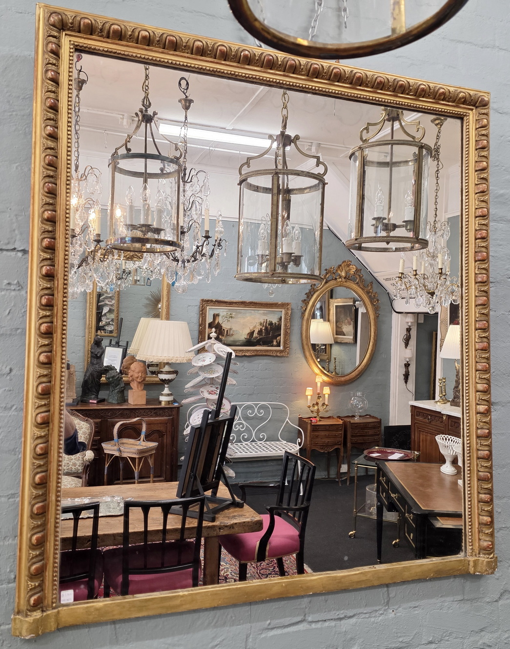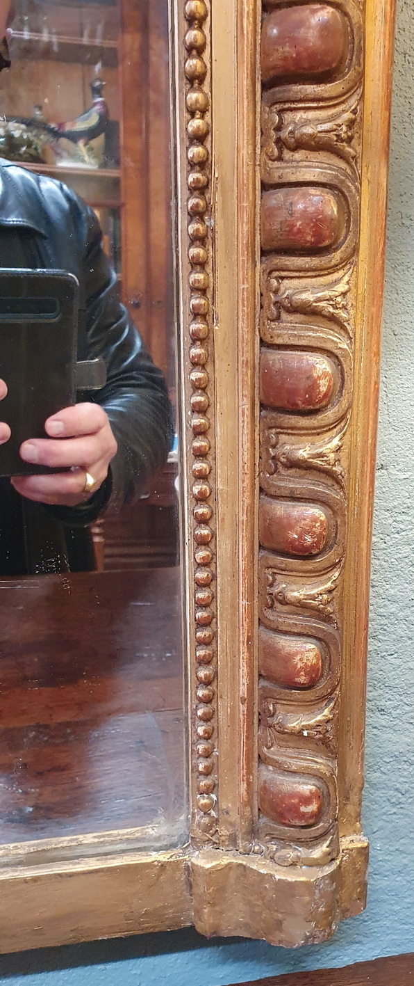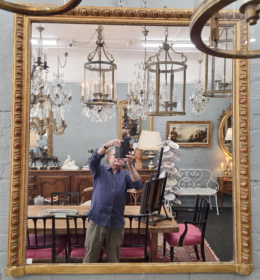 A 19th century French Napoleon III period Louis XVI style mantle mirror of Classical proportions, the gilt frame decorated with haut-relief Classic egg-and-dart and string-of-pearls pattern mouldings. Retaining the original silvered mirror plate. Paris, circa 1870.