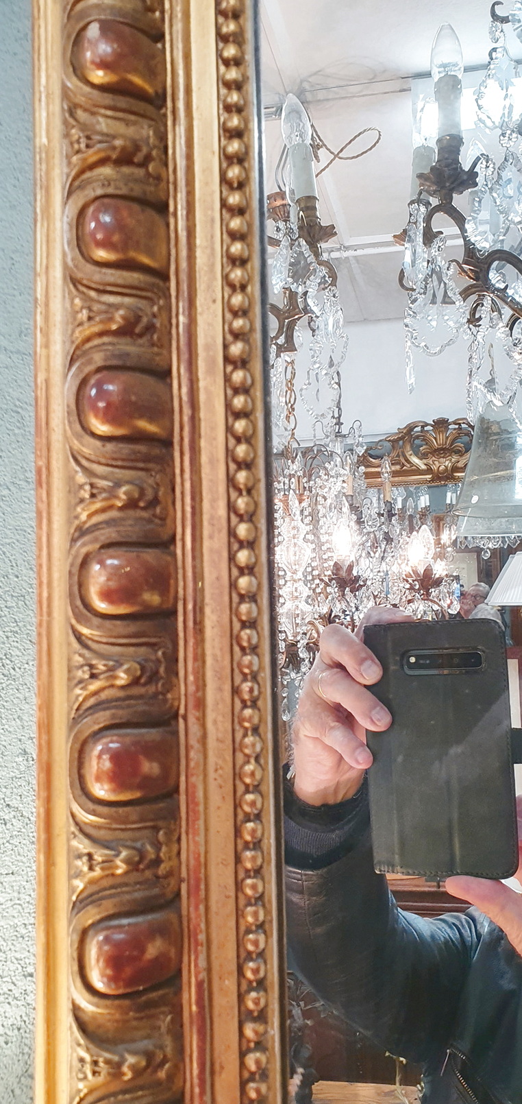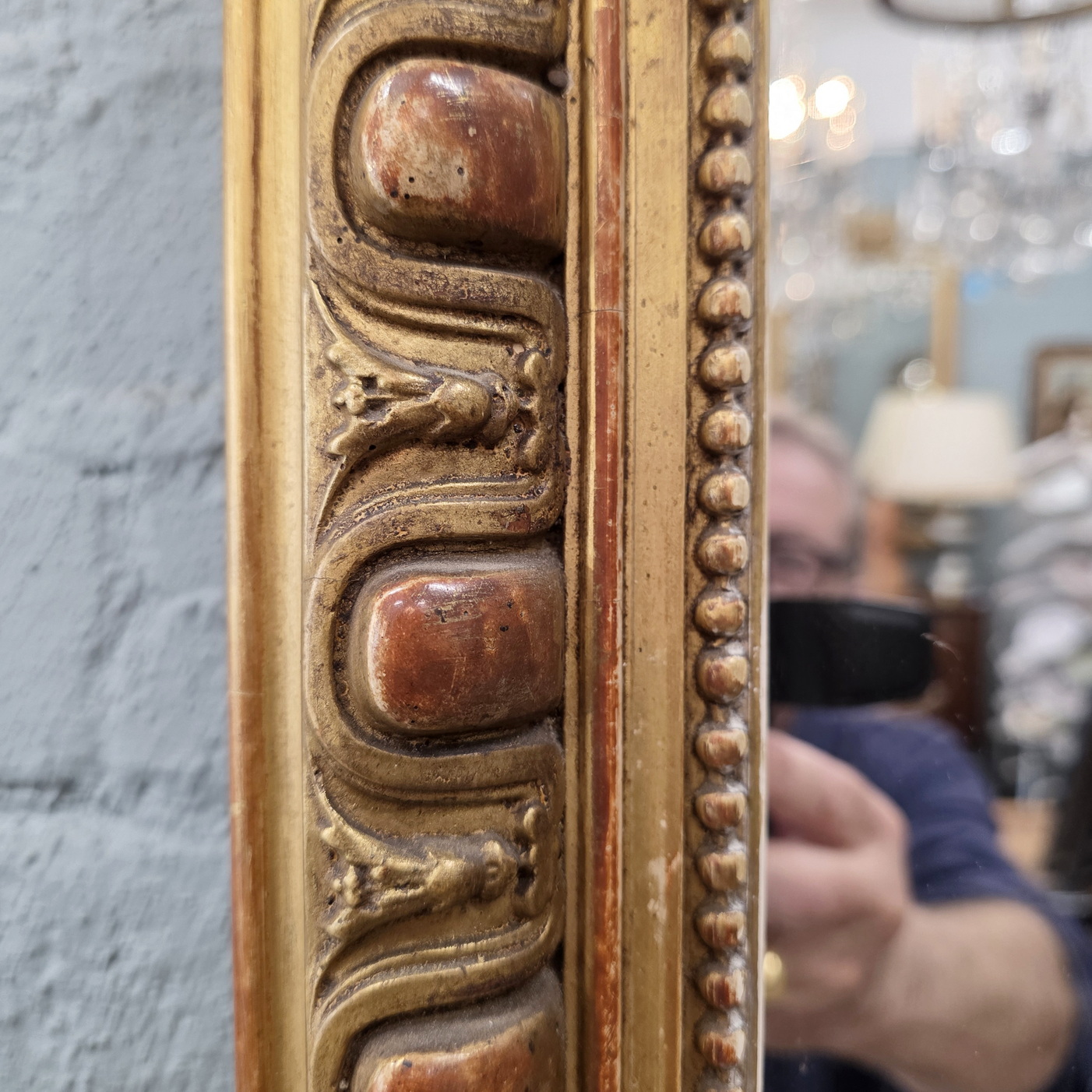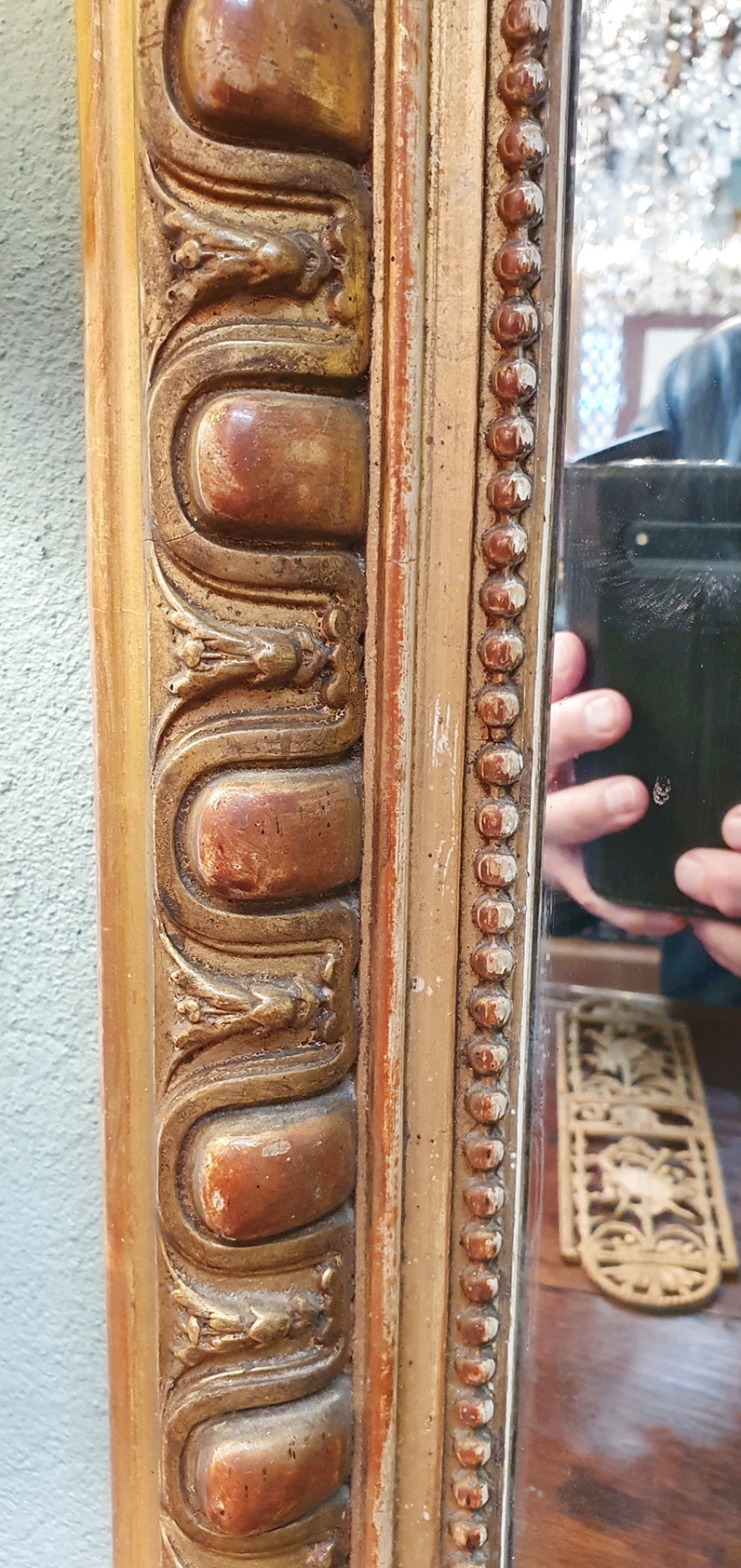 A 19th century French Napoleon III period Louis XVI style mantle mirror of Classical proportions, the gilt frame decorated with haut-relief Classic egg-and-dart and string-of-pearls pattern mouldings. Retaining the original silvered mirror plate. Paris, circa 1870.