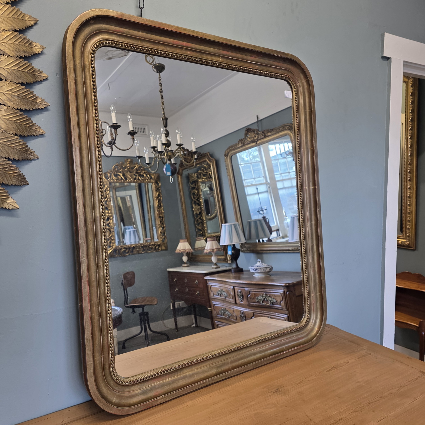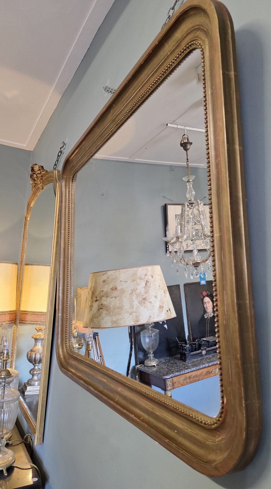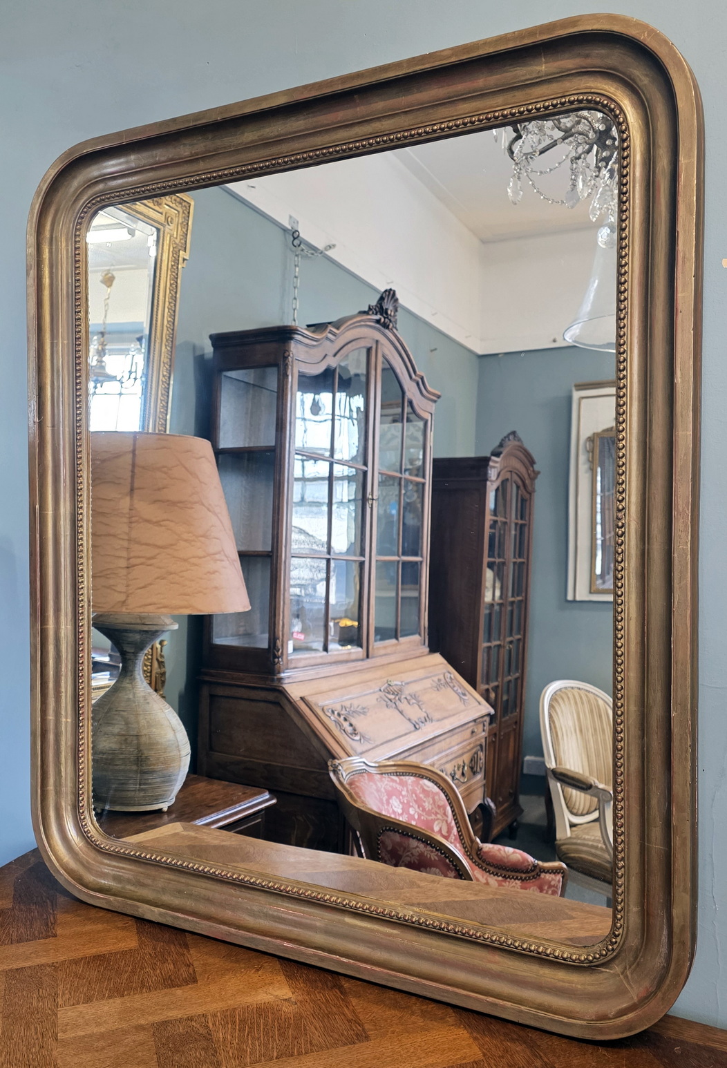 An identical pair of French Louis Philippe period gilt mirrors, the ogee moulded frames with rounded corners, the original gold leaf finish with a bronze-like patina. Fitted with later mirrors. Please note: being symmetrical, these mirrors are able to be hung vertically, or horizontally. Area of Paris, circa 1830.
