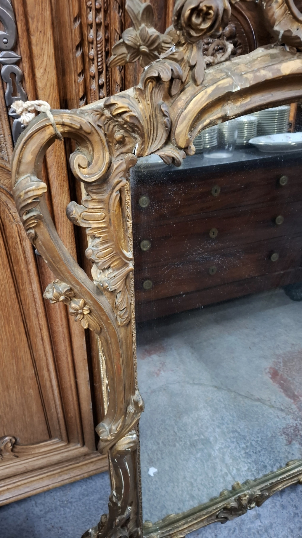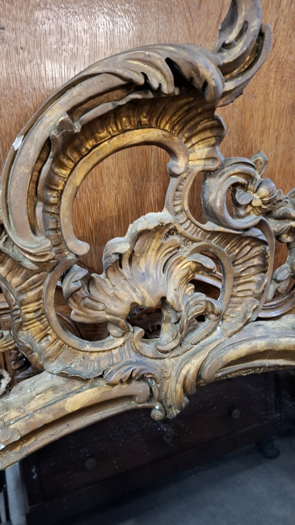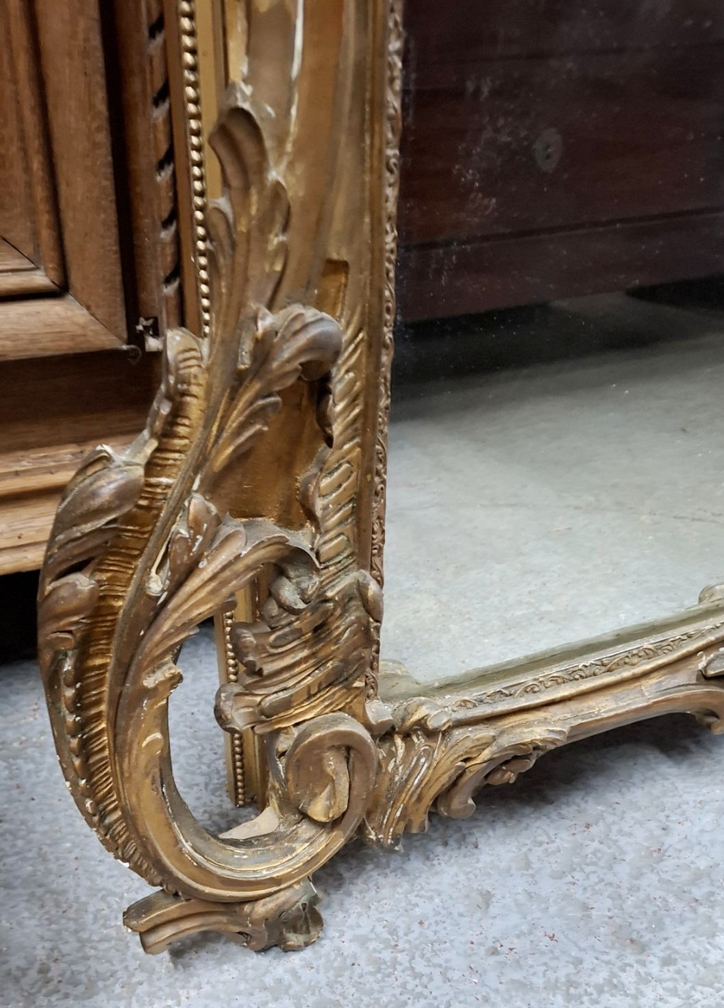 A fine 19th century Napoleon III period, Louis XV style gilt mantle mirror retaining the original mirror plate. The elegantly shaped frame decorated with a twisting scrollwork and foliate motifs, the shaped pediment surmounted by a large foliate motif crest interspersed with flowers. The gilding retains the original and soft patination throughout. Area of Paris, circa 1860.