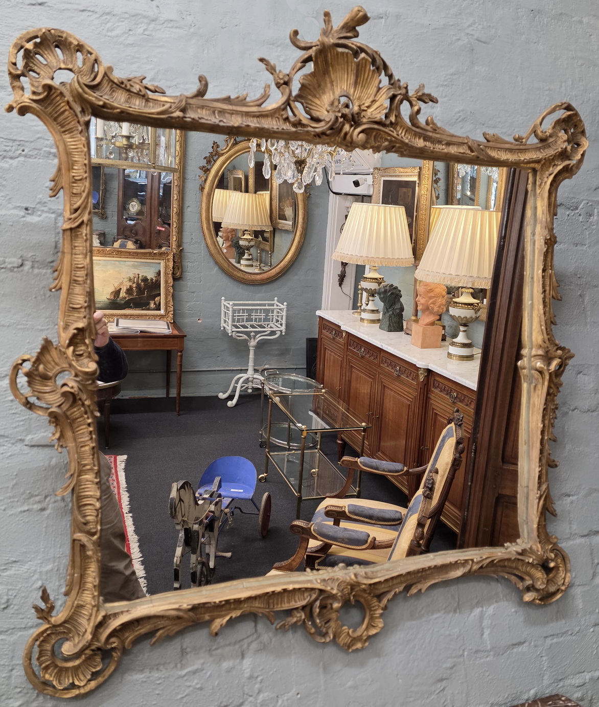 A pair of 19th century Italian Louis XV style 'Rococo' mirrors, the finely carved and gilded frames with subtly asymmetric in shapes - typical of the Rococo style, decorated with wonderfully scrolled foliate and 'Rocaille' motifs. Area of Venice, circa 1870.
