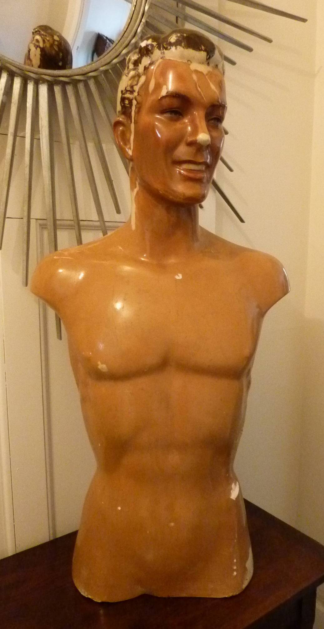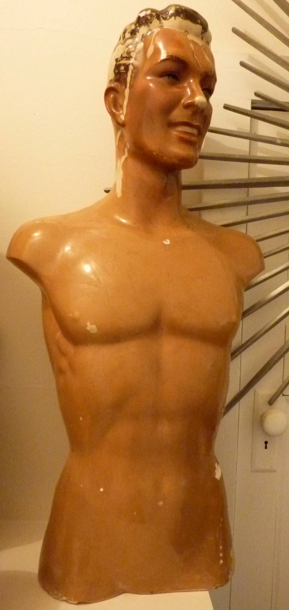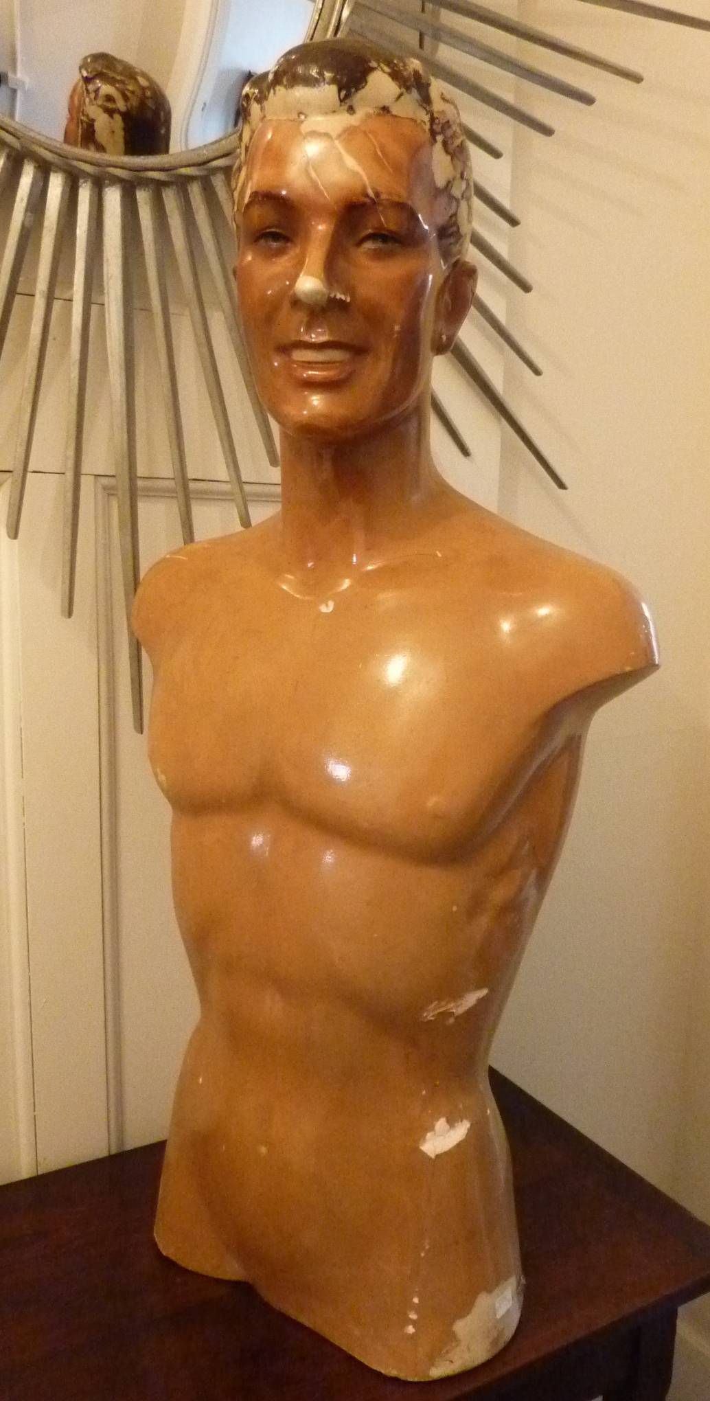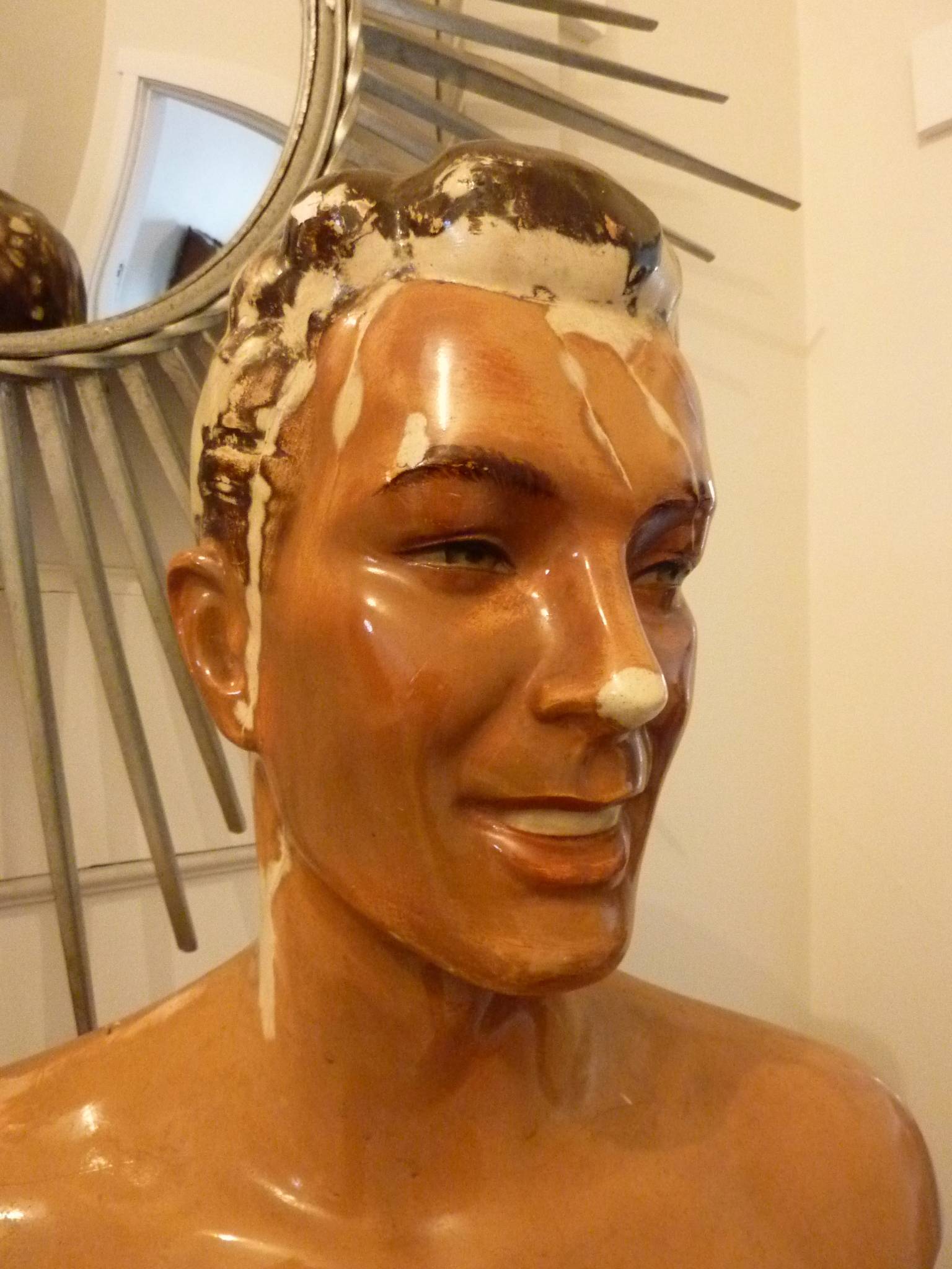 A 1930s French Art Deco period male mannequin retaining the original hand-coloured finishes.