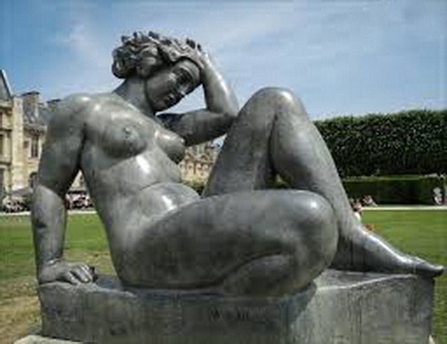 An Aristide Maillol Lithograph from his limited series 'Dialogues des Courtisanes', depicting a reclining nude reminiscent of the sculpture 'Montagne', which is on display at the Jardin des Tuileries, in Paris. The monogram at the bottom-left is that of Aristide Maillol (Aristide Joseph Bonaventure Maillol, 1861-1944), an internationally renowned French sculptor, painter, and printmaker. Maillol worked with, and was influenced by, Paul Gauguin and the 'Nabis' group at Pont-Aven. He also worked closely with his artist friends Pierre Bonnard, Henri Matisse, Auguste Rodin and Maurice Denis. Area of Paris, circa 1935.