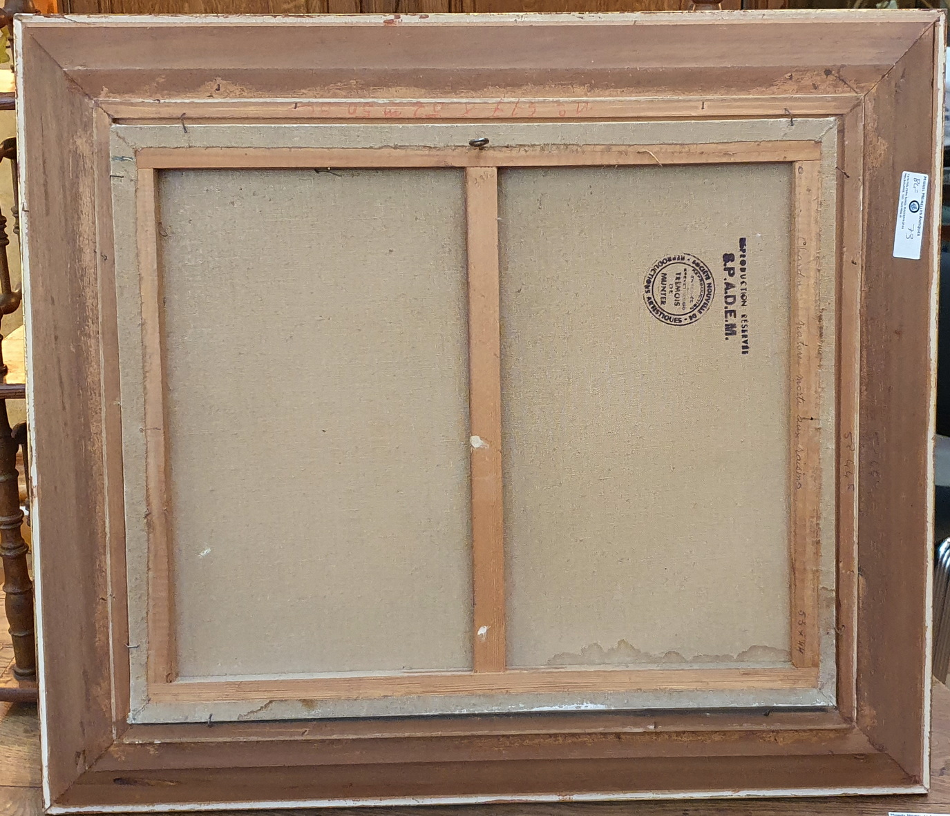 The rear stamped with the SPADEM hallmark. The "Société de la Propriété Artistique et des Dessins et Modèles" (The Society for Artistic Property and Designs and Models), referred to as S.P.A.D.E.M., or SPADEM, was a copyright protection and collection society formed by visual artists and their heirs in France.