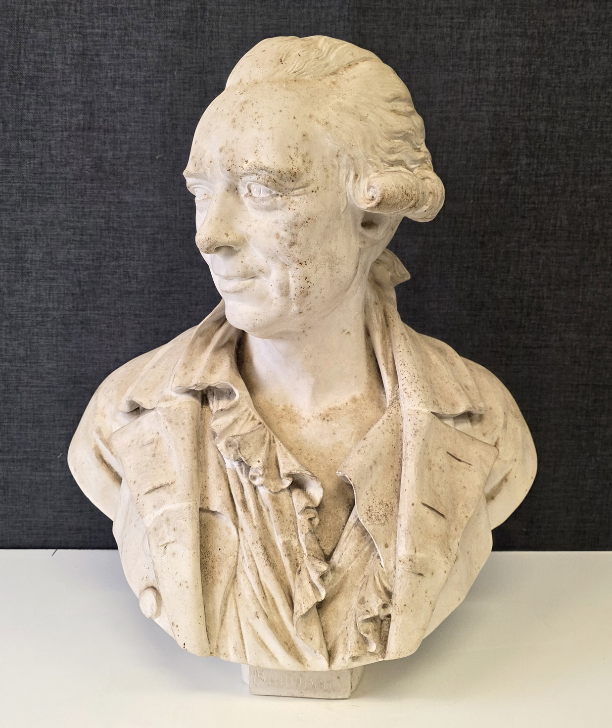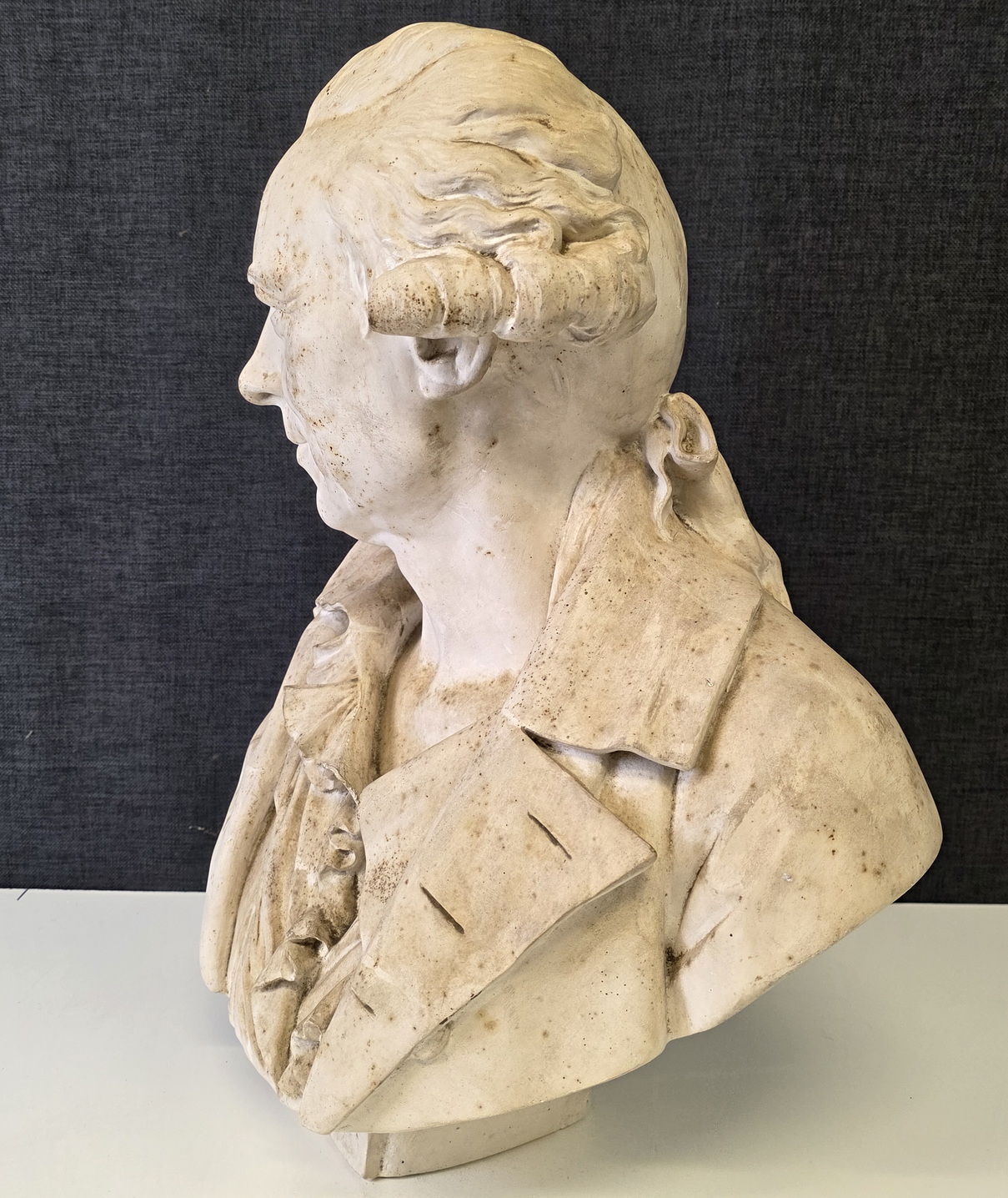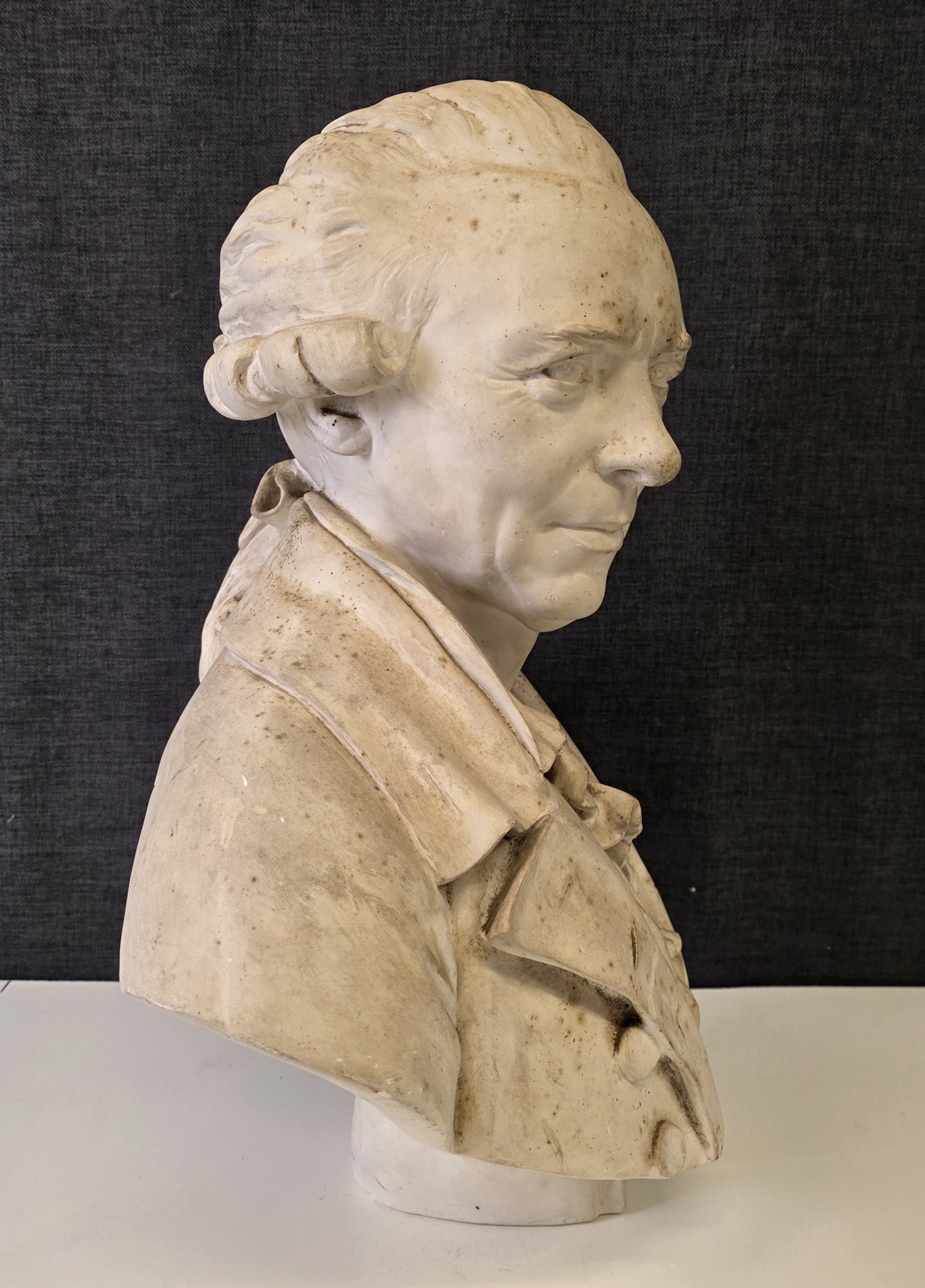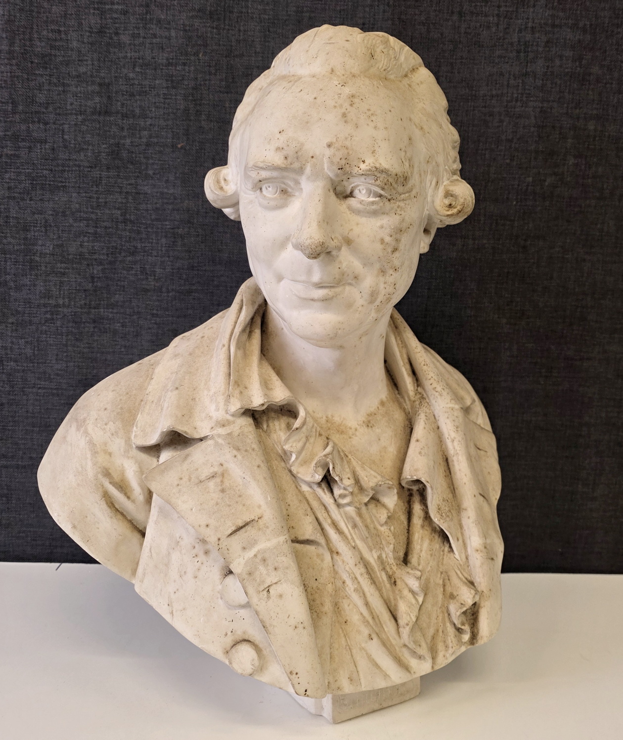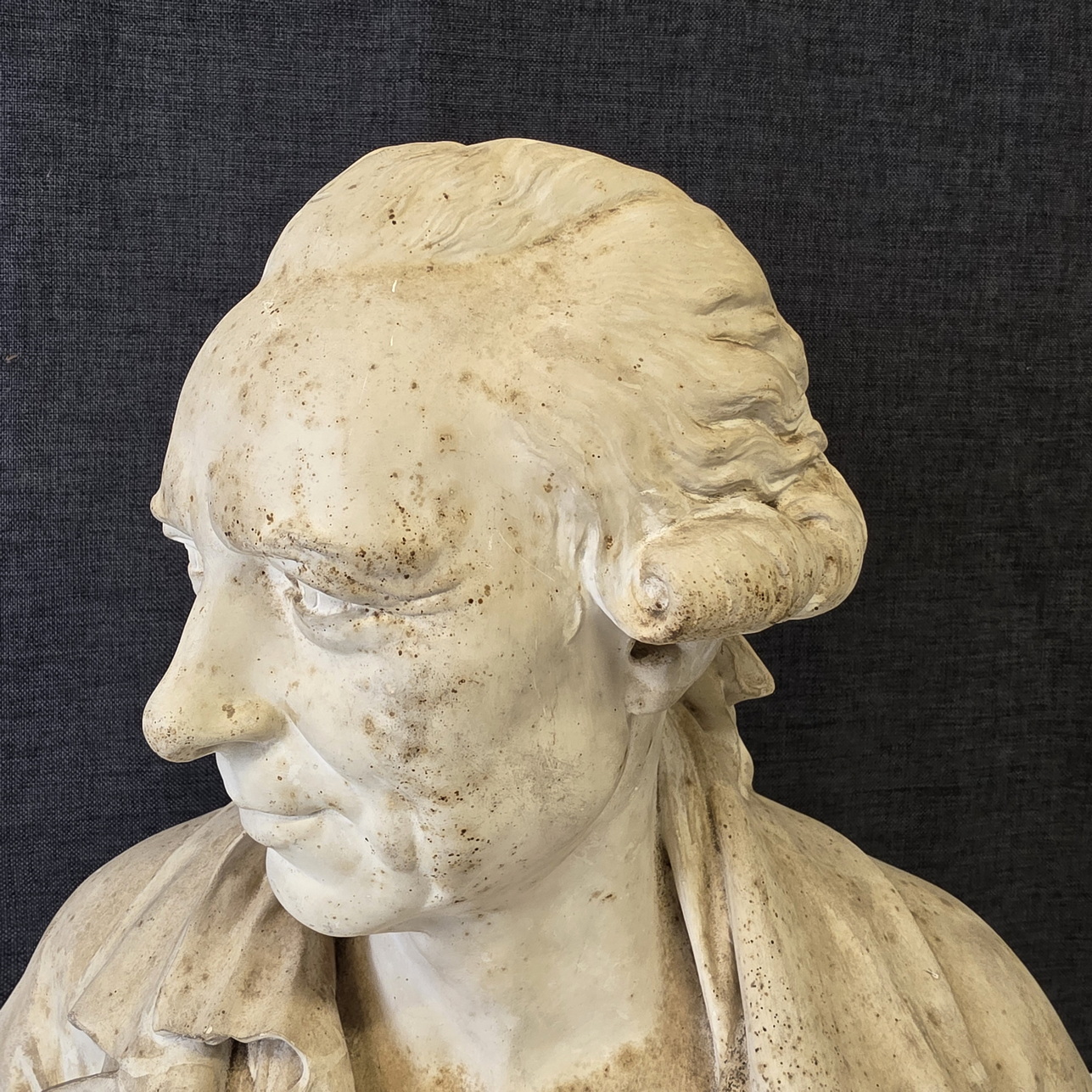 An 18th century plaster bust of François-André Danican Philidor (1726-1795), a French composer of Opéra Comique and a famous chess player. To this day, the 'Philidor defence' is still used in chess openings. Signed and dated at the rear of the plinth by Augustin Pajou (Paris 1730 – 1809). Pajou was a renown sculptor at the French court of Louis XVI and who made busts of Marie Antoinette and of Madame Dubarry.  Area of Paris, dated 1783.