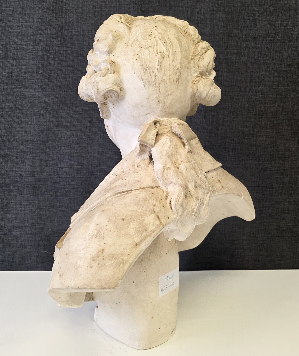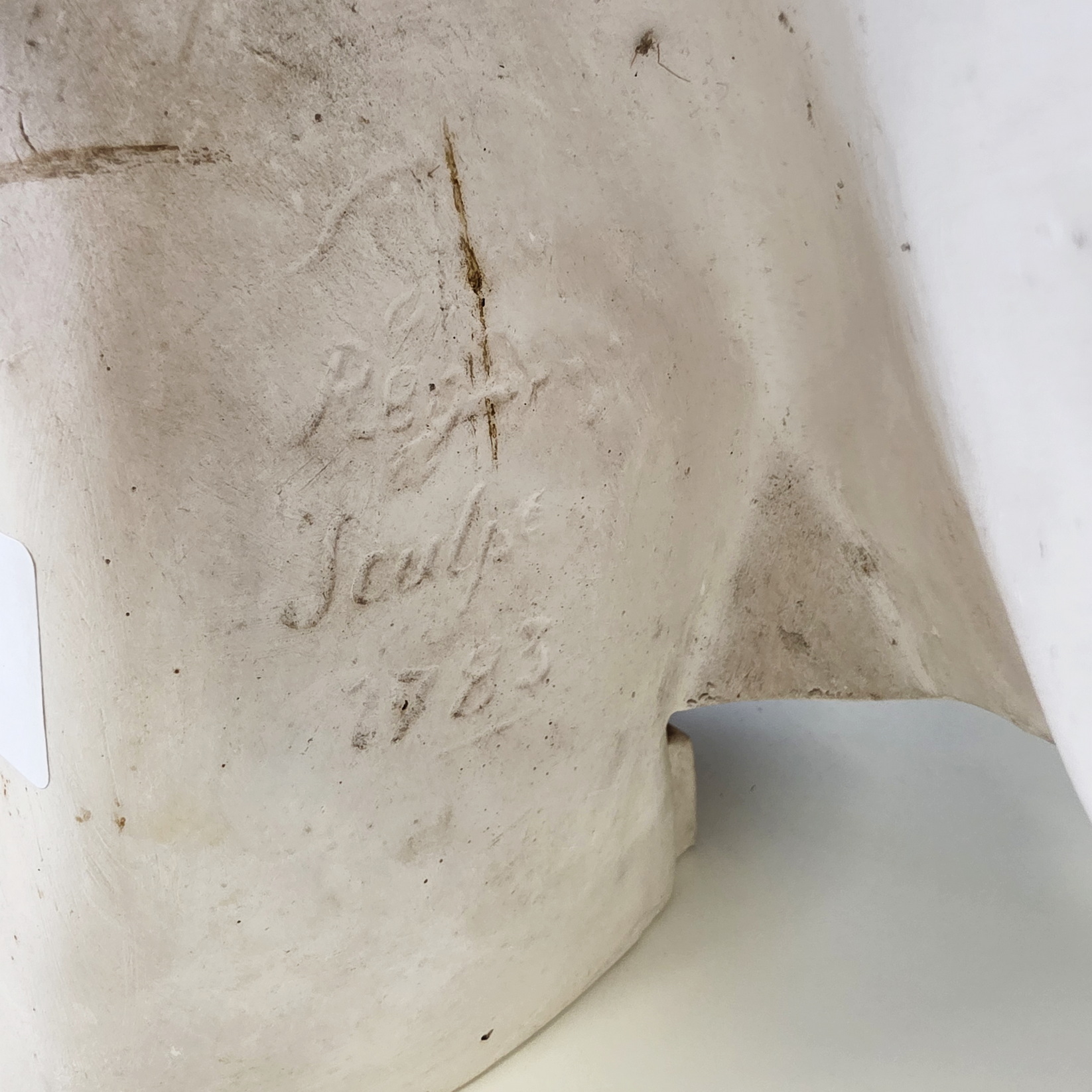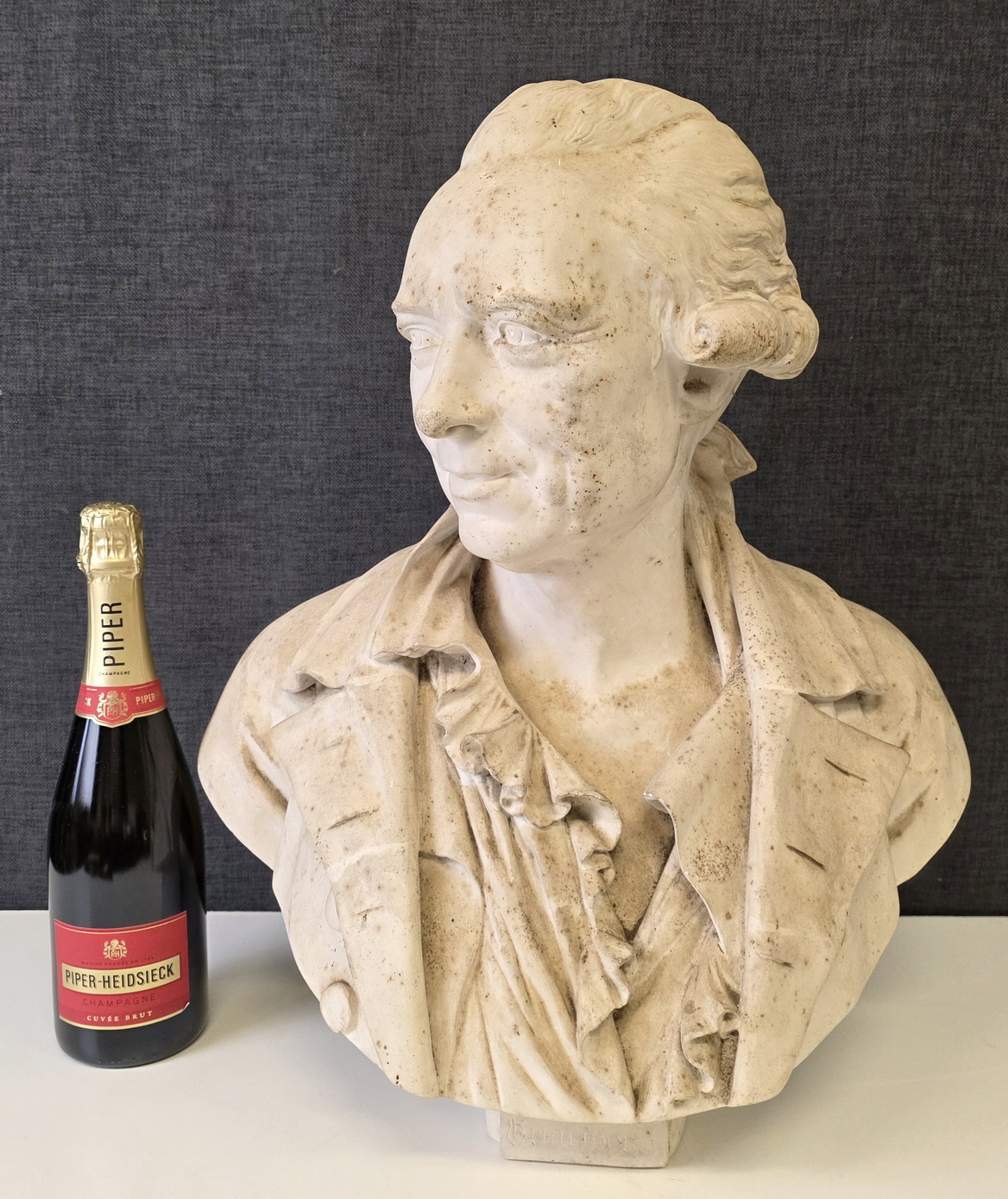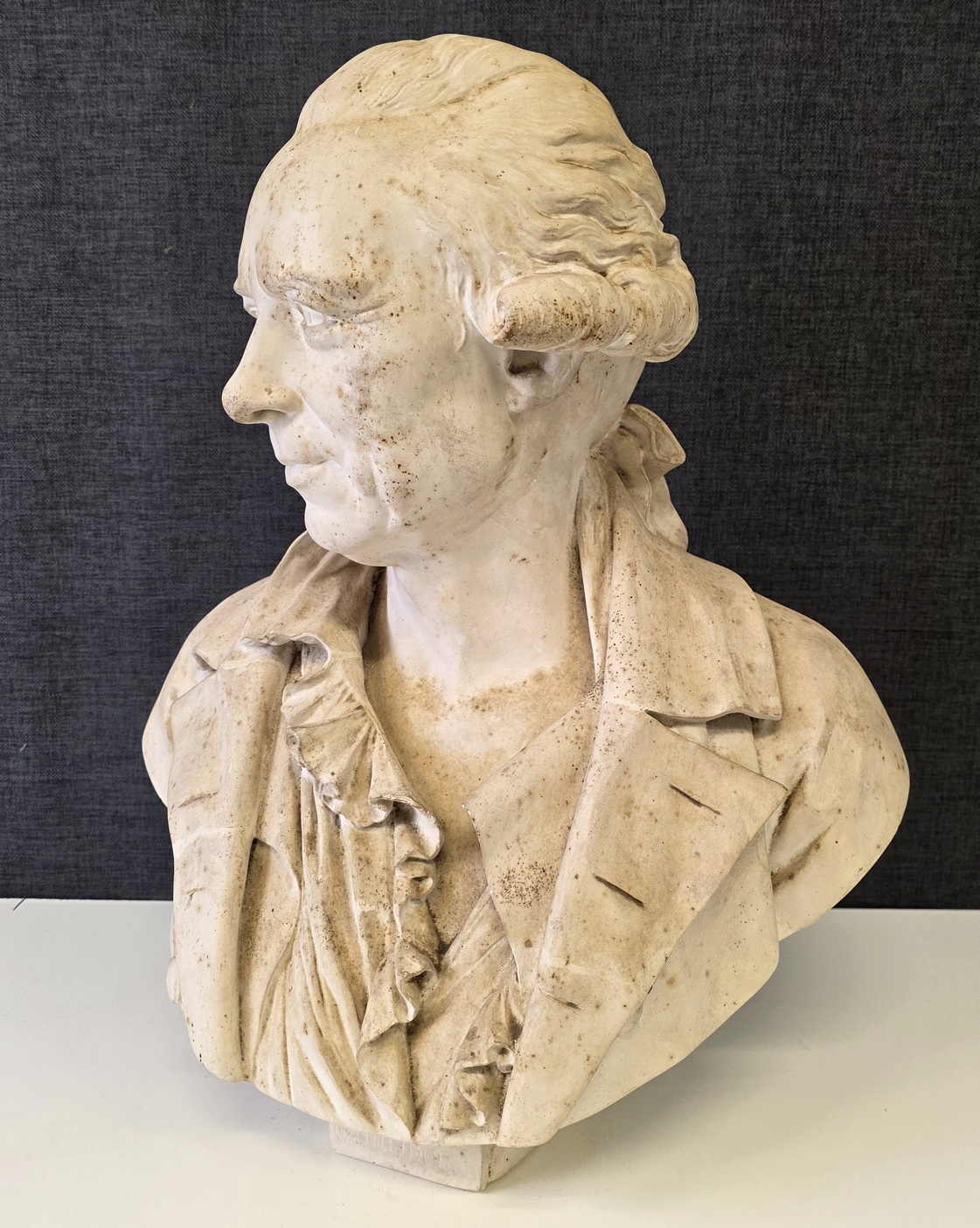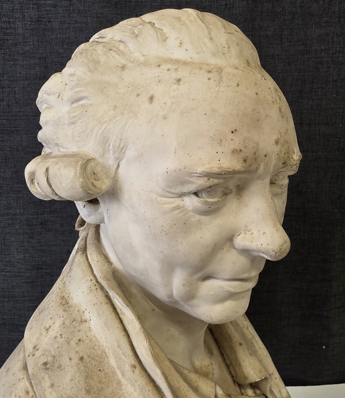 An 18th century plaster bust of François-André Danican Philidor (1726-1795), a French composer of Opéra Comique and a famous chess player. To this day, the 'Philidor defence' is still used in chess openings. Signed and dated at the rear of the plinth by Augustin Pajou (Paris 1730 – 1809). Pajou was a renown sculptor at the French court of Louis XVI and who made busts of Marie Antoinette and of Madame Dubarry.  Area of Paris, dated 1783.