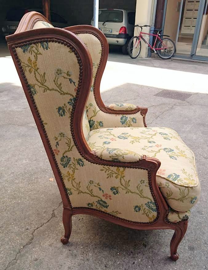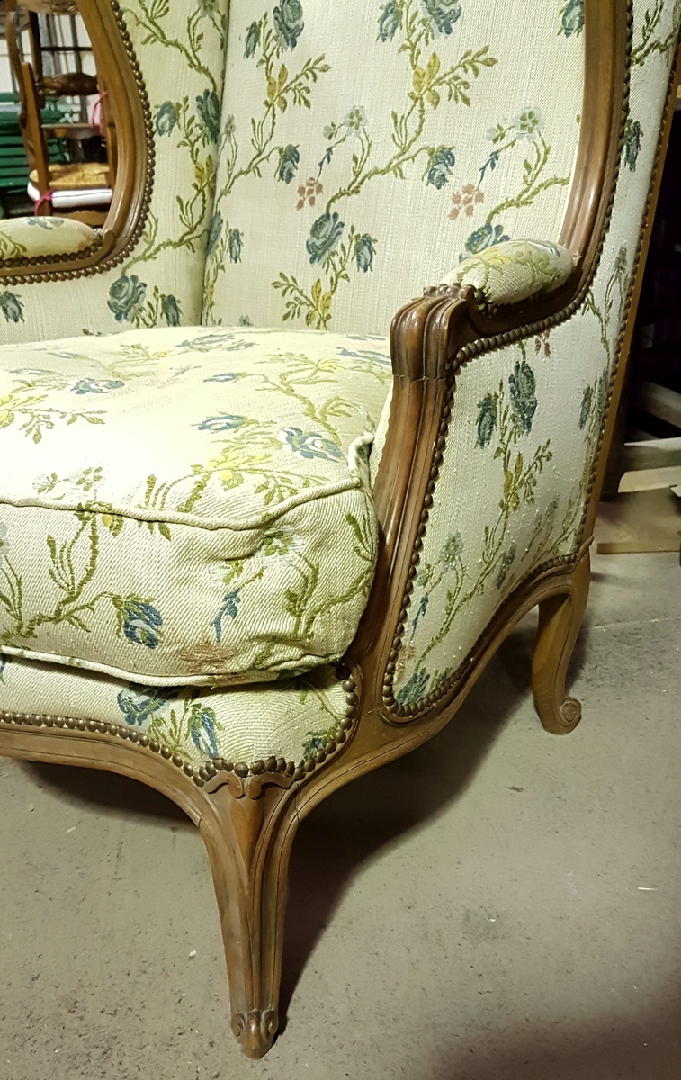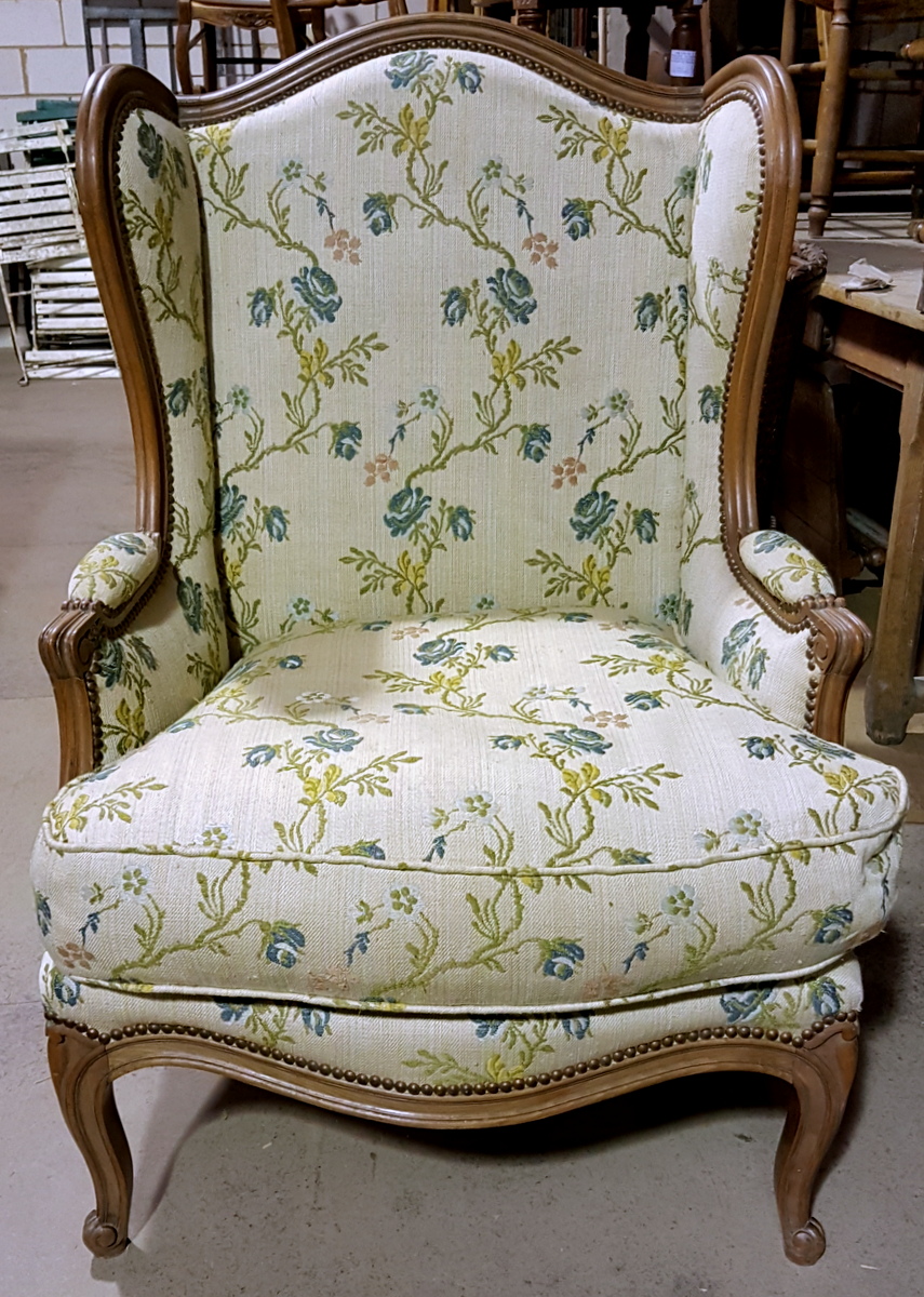 A large Louis XV Bergere Wing Armchair